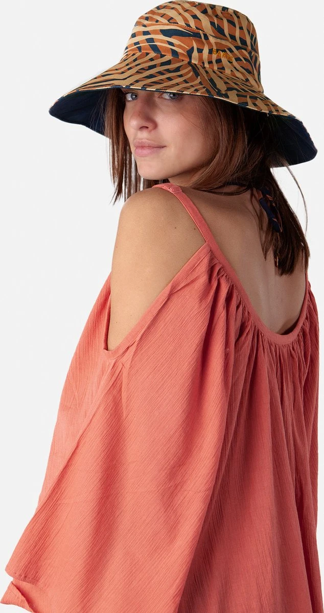 De Hamutan Hoed is gemaakt van 100% katoen. De hoed heeft een brede rand om je tegen de zon te beschermen en heeft een verstelbare pasvorm voor een breed pasbereik.