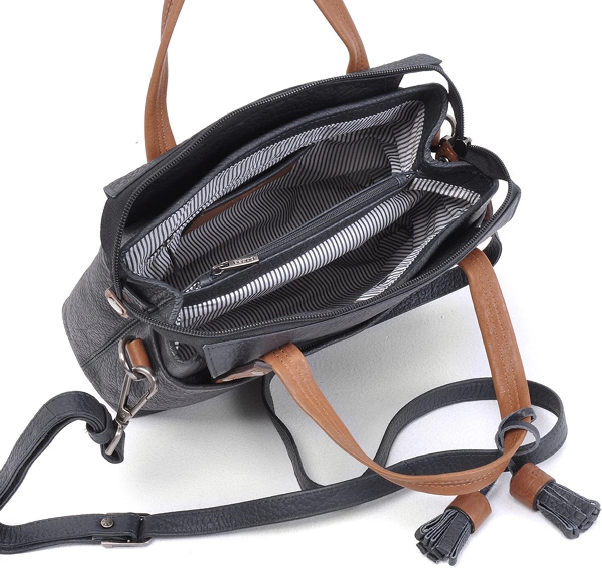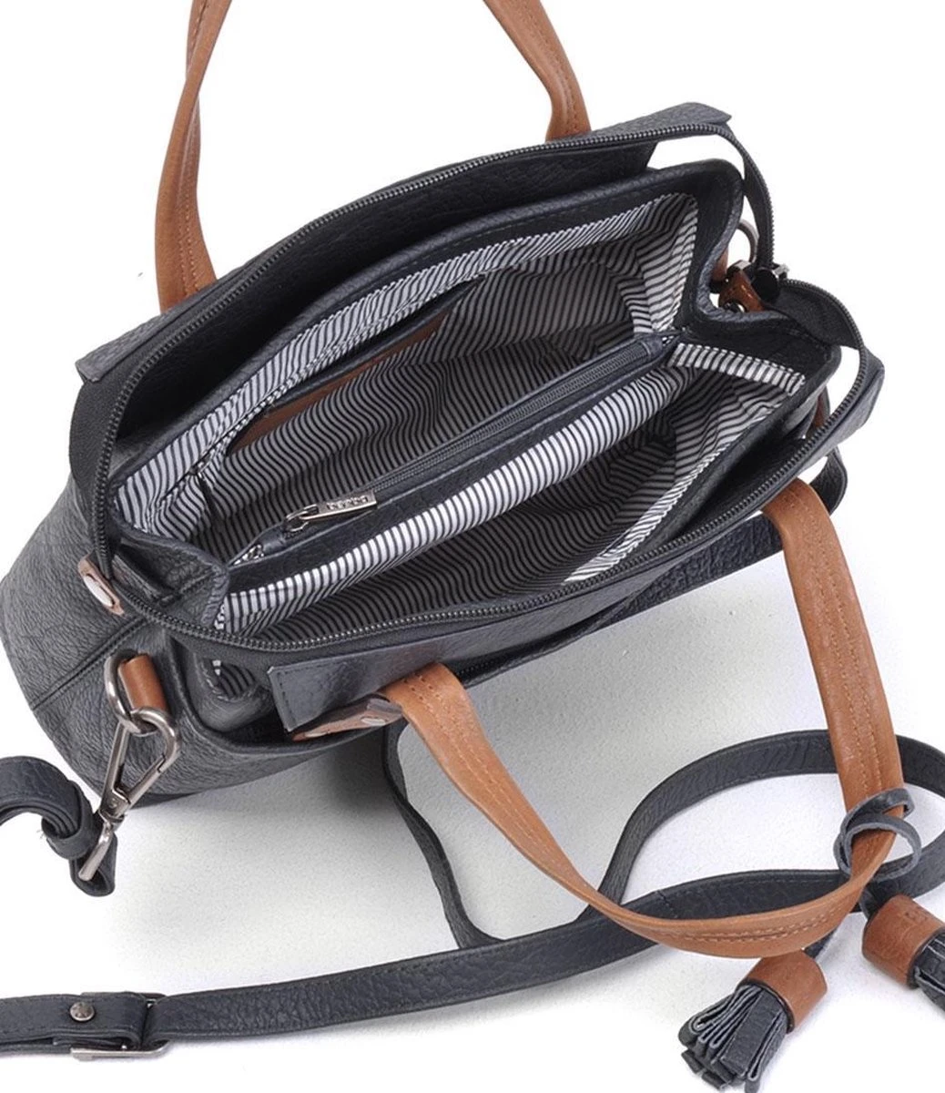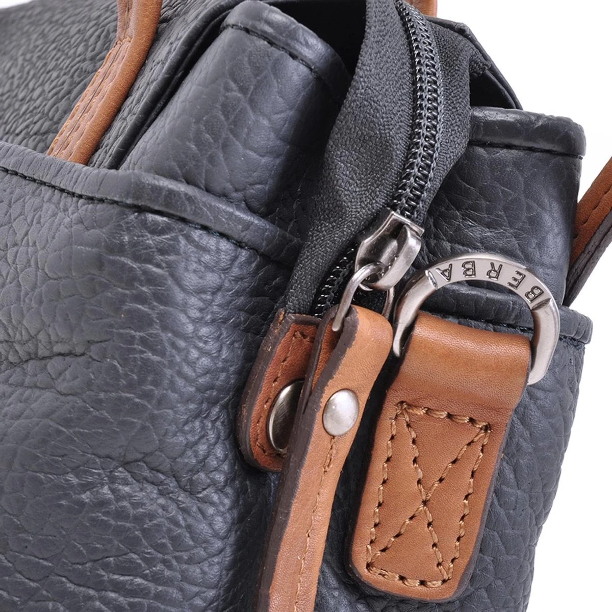 Stijlvolle schoudertas / handtas uit de Chamonix serie van Berba. De tassen en portemonnees zijn handgemaakt in 2 kleuren prachtig echt leer, de 2 kleuren leer geeft de tas een trendy uitstraling. Op de bodem van de tas zitten 4 metalen bodemnoppen, door de bodemnoppen kan de tas uit zichzelf blijven staan. De tas heeft veel ruimte en een prachtige vakindeling. U kunt uw spullen in het hoofdvak, voorvak en achtervak met ritssluiting. Intern heeft de tas een verdeler met ritssluiting, 2 steekvakken, een smartphonevakje en een ritsvak. De voering van de tas heeft een gestreept motief. Door de meerdere vakken kunt u gemakkelijk uw spullen scheiden in de tas. De tas heeft 2 handvatten op de bovenzijde. Ook heeft de tas een lange verstelbare en afneembare schouderband, doordat de schouderband verstelbaar is kunt u de tas altijd op de gewenste lengte dragen. De afmeting van de tas is 27 x 21 x 9 cm. * Een ruim hoofdvak met ritssluiting * Intern een handige indeling met een verdeler met ritssluiting, een ritsvak, een smartphonevakje en 2 steekvakken * Een voorvak met ritssluiting * Een achtervak met ritssluiting * Een lange afneembare en verstelbare schouderband * 2 handvatten * Gemaakt van 2 kleuren prachtig echt leer * Een voering met gestreept motief * Metalen Berba logo mooi verwerkt in het leer Berba is in 1975 opgericht in een klein plaatsje in het Zuid-Limburgse heuvelland en is een samenvoeging van Berry & Bas, de 2 oudste zoons van de oprichter. Al vanaf het begin was het merk Berba anders. Door de onafgebroken focus van Berba op luxe, duurzaamheid en originaliteit ontstaan prachtige lederen creaties die zich onderscheiden van de massa.