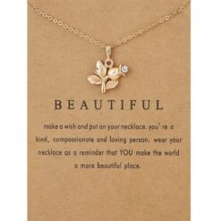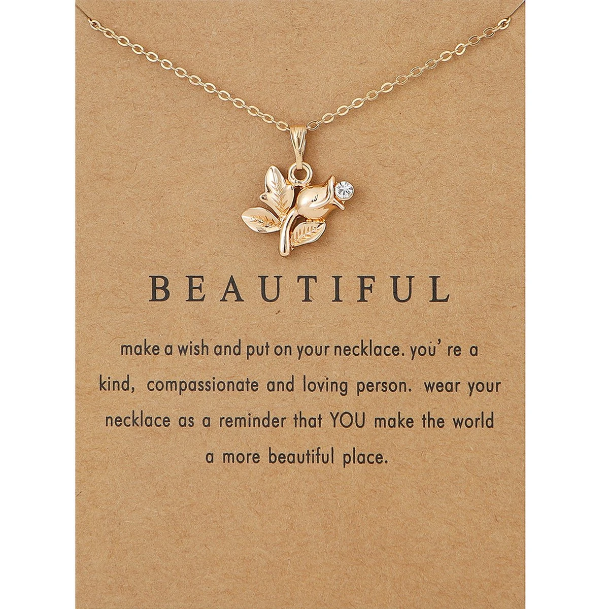 Bixorp Luck Gouden Dames Ketting Met Plantje – “Beautiful” – 45/50cm – Cadeau Voor Valentijnsdag – Cadeau Voor Vrouw – Goudkleurig