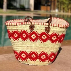 Dit maakt elke tas uniek!Materiaal ; riet, leer, katoenen voering, Wol