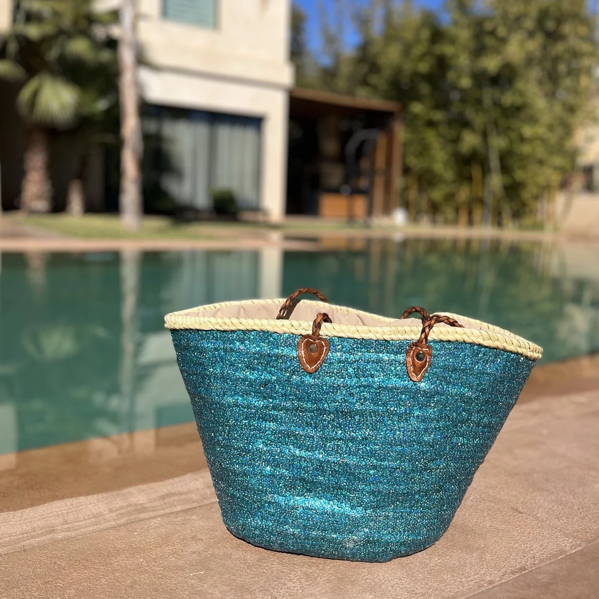 Dit maakt elke tas uniek!Materiaal ; riet, leer, katoenen voering, Pailletten