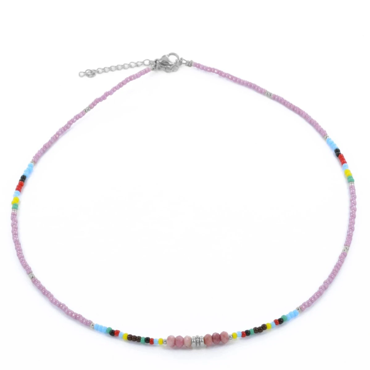 CO88 Collection 8CN-26374 Miyuki Kralen Ketting 45cm – Roze En Multi Kleuren – 40+5cm – 2,2mm Dikte – Staal – Goudkleurig