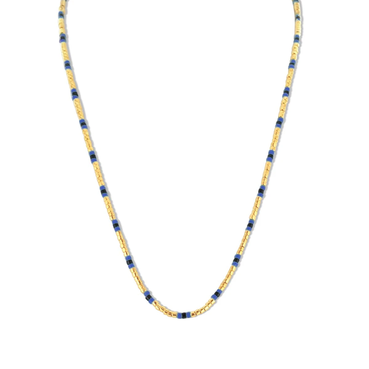 CO88 Collection 8CN-26381 Miyuki Kralen Ketting 45cm – Goudkleurig Donker Blauw – 38+7cm – 1,8mm Dikte – Staal – Goudkleurig