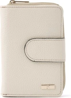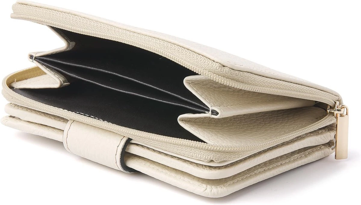 Deze damesportemonnee is gemaakt van rundleder en is zeer praktisch. De portemonnee bestaat uit twee delen: een vak met rits voor muntgeld en een vak met klep met druksluiting waar plaats is voor negen creditcards, waarvan een met kijkvenster. Er zijn twee steekvakken voor papiergeld en nog een extra vak met kijkvenster. Daarnaast bevat de portemonnee nog vijf extra steekvakken. Deze portemonnee heeft RFID portectie. Dit beschermt tegen het skimmen van betaalpassen.