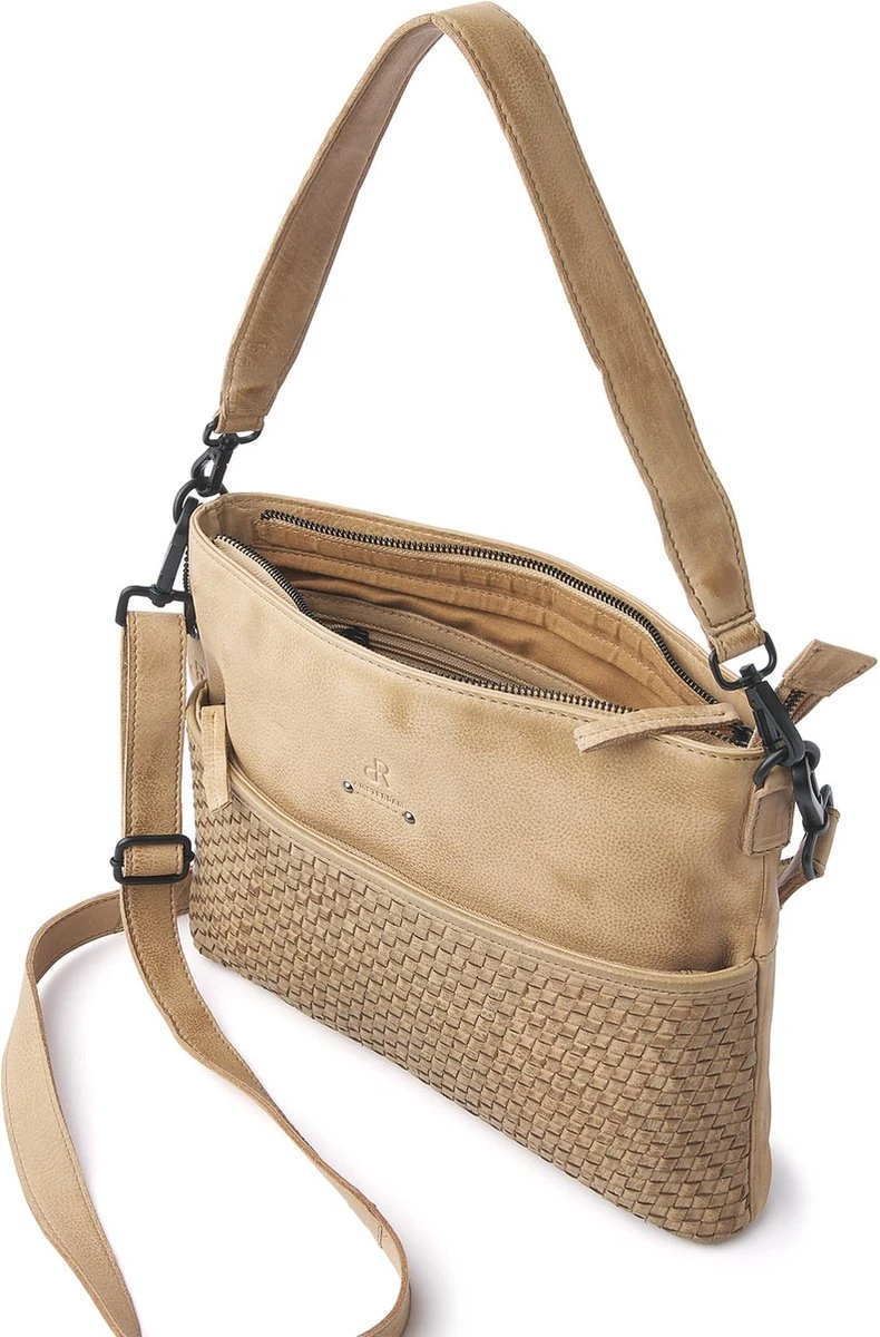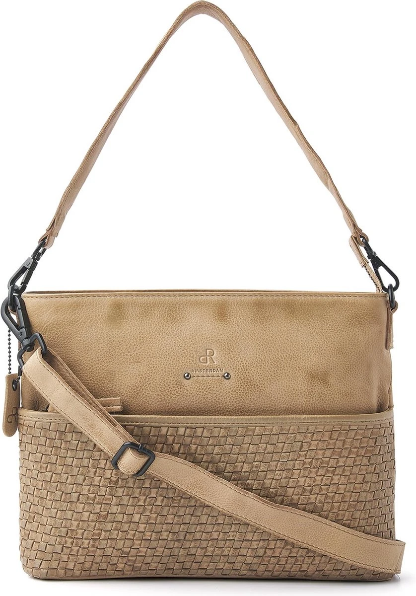 Als je kijkt naar het formaat is dit een handige schoudertas welke veilig af te sluiten is met een rits aan de bovenzijde. De schoudertas is gemaakt van zacht rundleder en beschikt over een lang handvat. Tevens heeft de tas een verstelbare en afneembare schouderriem waardoor de tas als crossover gedragen kan worden. De tas heeft zowel een ritsvak aan de achterzijde als aan de voorzijde voor het opbergen van kleine spullen. Aan de binnenzijde heeft de tas een ritsvak, een speciaal telefoonvak en een sleutelhanger.