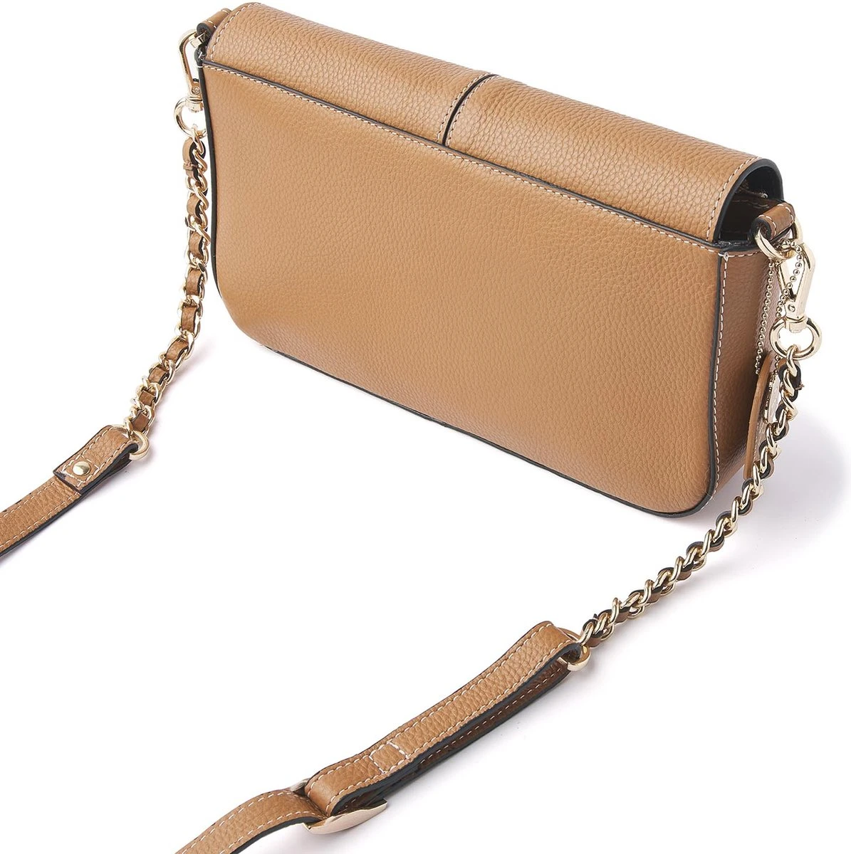Een mooie schoudertas welke goed van formaat is om mee te nemen. De tas is gemaakt van rundleder en wordt afgesloten met een flap met magneetsluiting. De schouderband is afneembaar en verstelbaar en beschikt over een leuke ketting aan de uiteindes. Er is een groot opbergvak, met twee kleinere ritsvakken aan de binnenzijde beschikbaar. Voor het meenemen van je telefoon is er een speciaal vak en ook je sleutels kun je makkelijk kwijt aan de sleutelhanger.