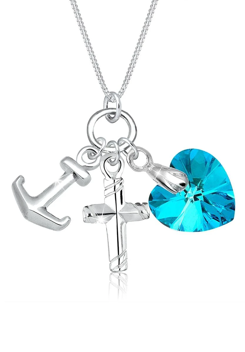 Deze delicate ketting combineert meerdere symbolische hangers in één sieraad. De hangers gemaakt van het fijnste 925 Sterling Zilver bestaan uit een delicaat kruis, een hart gemaakt van kristallen en een trendy anker. Deze modieuze personages staan symbool voor geloof, liefde en hoop. Zet een modieus hoogtepunt met dit veelzijdige sieraad en complementeer uw outfits met deze sprankelende ketting.