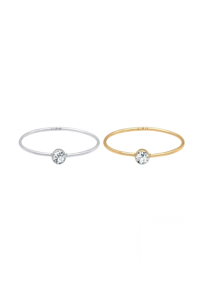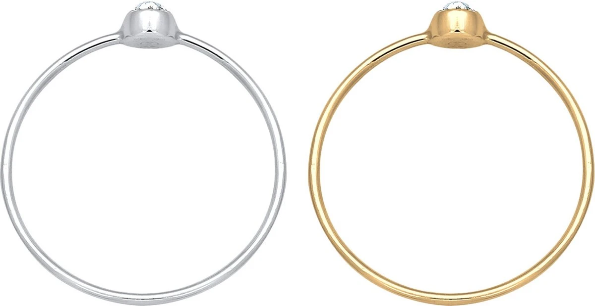 Elli Dames Ring Dames Stapelen Set Van 2 Eenzaam Basis Tweekleurig Met Kristal In 925 Sterling Zilver Verguld