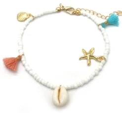 Enkelbandje – Schelp En Zeester – Anklet – Lengte 25-30 Cm – Wit