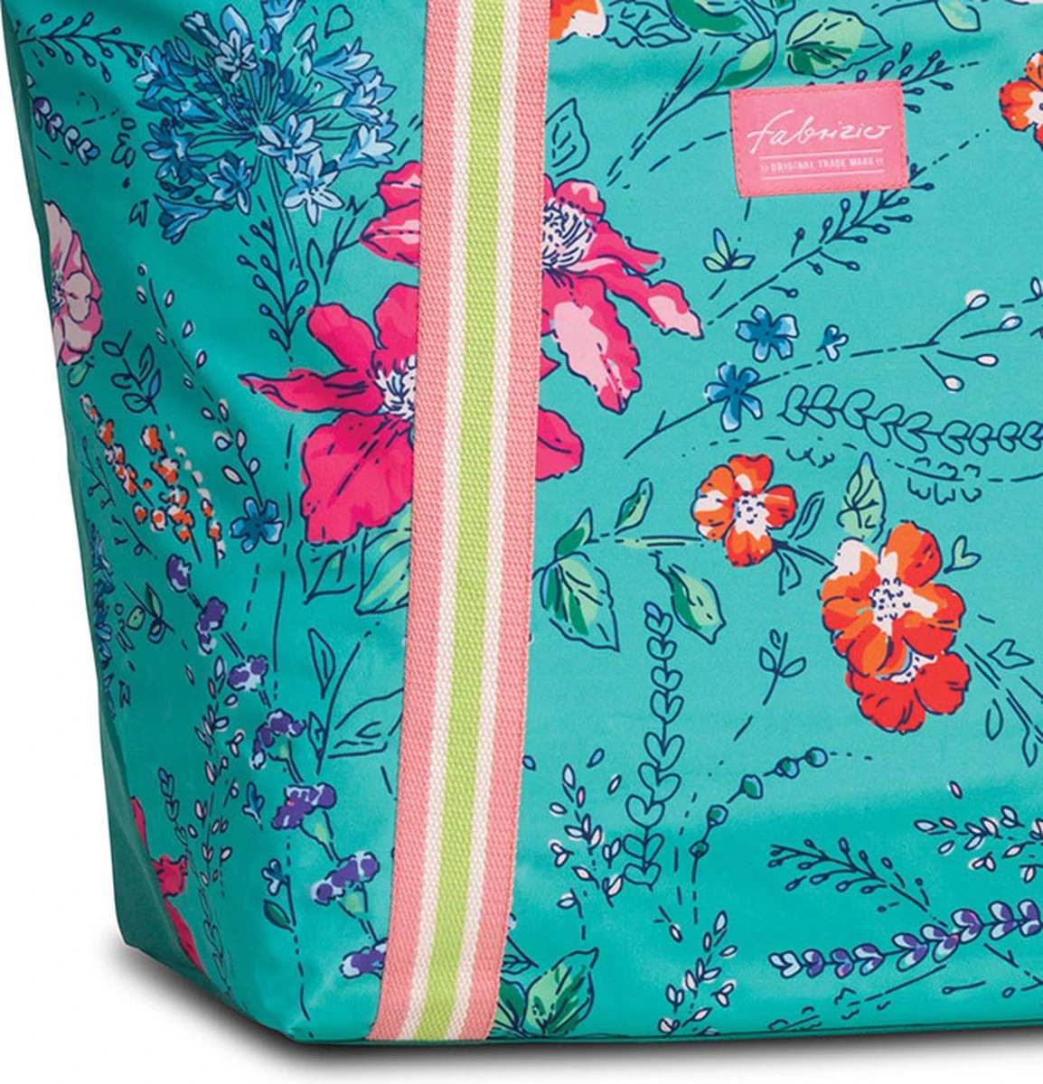Gave strandtas van het merk Fabrzio. Je kan de tas dragen met de 2 handvatten in de hand of over de schouder. Het hoofdvak die sluit met ritssluiting is zeer ruim. In het hoofdvak zit een steekvakje en een binnenvakje met ritssluiting, handig voor de wat kleinere spullen. De tas is 56 x 38 x 20 cm. De tas beschikt over: * Een ruim hoofdvak met ritssluiting * Binnenvakje met ritssluiting * Steekvakje intern * 2 handvatten * Flower print