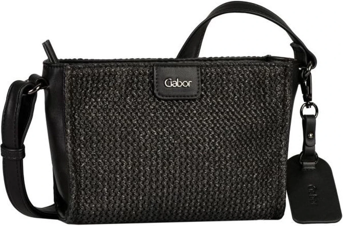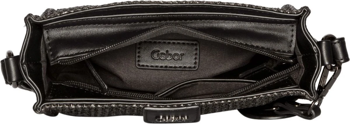 Gabor bags model 9243 60 Lori , is een zwarte raffia handtas en afgewerkt op de achterkant met imitatieleder. De Gabor handtas heeft 1 verstelbare riem in zwart die gemakkelijk over de schouder kan hangen of crossover kan gedragen worden. De handtas heeft 1 groot vak en 2 kleinere vakjes binnenin. Afmetingen : Hoogte 15 cm x breedte: 20 cm x Diepte 7 cm.