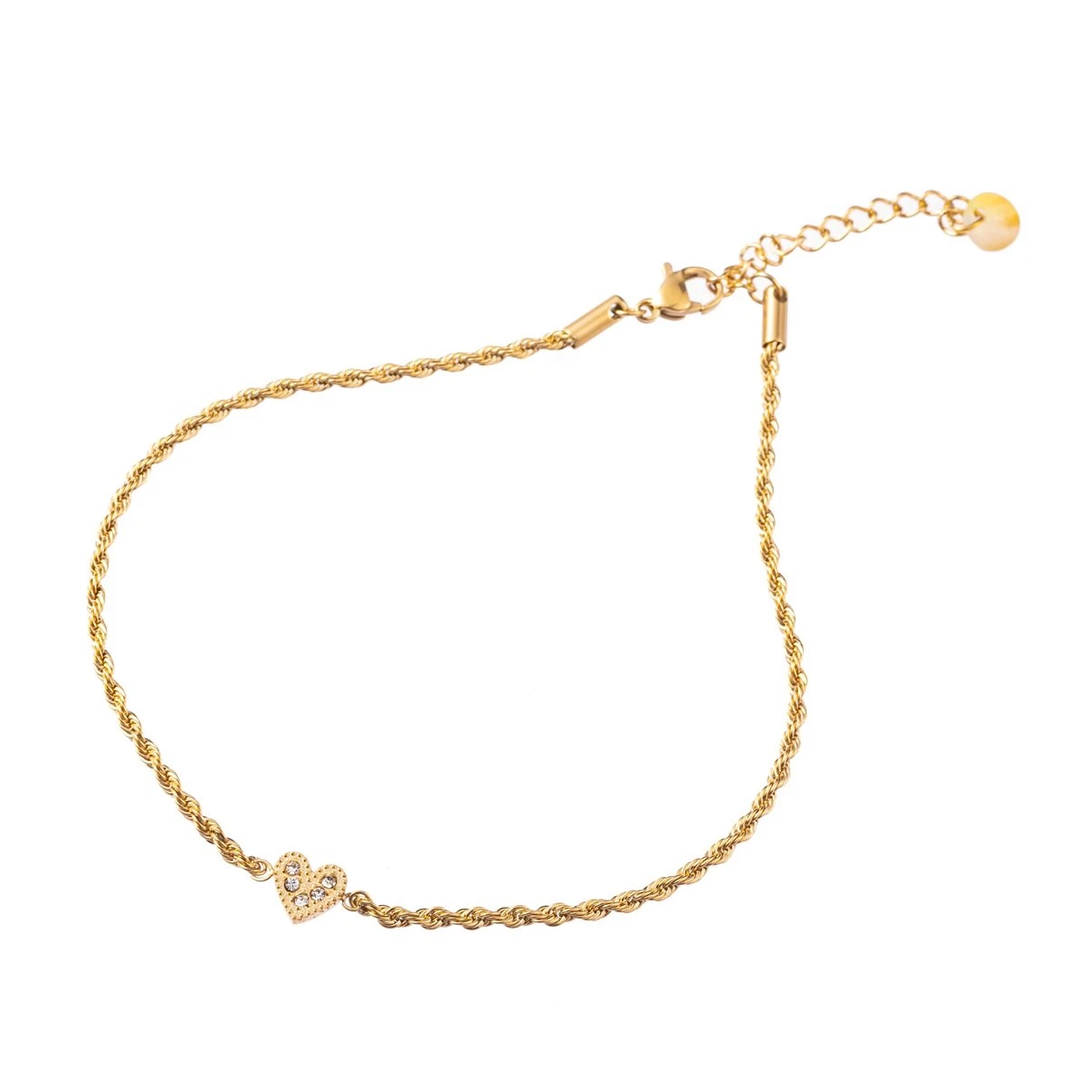 Go Dutch Label Enkelsieraad Crystal Hart Goud