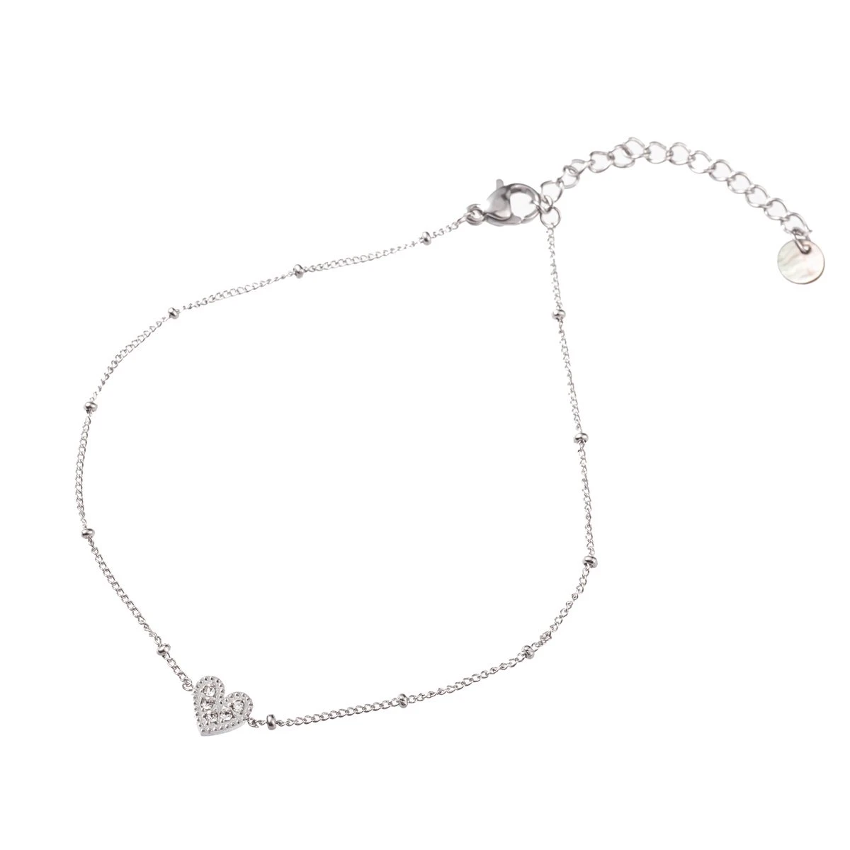 Go Dutch Label Enkelsieraad Crystal Hart Zilver
