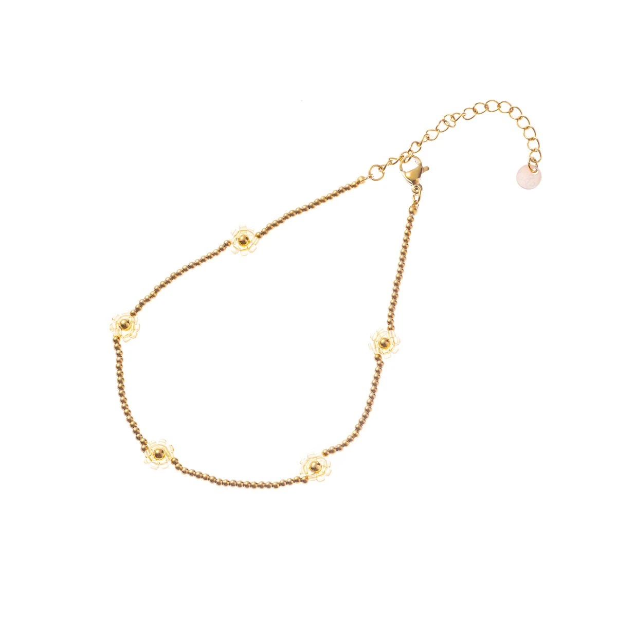 Go Dutch Label Enkelsieraad Kralen Madeliefs Beige