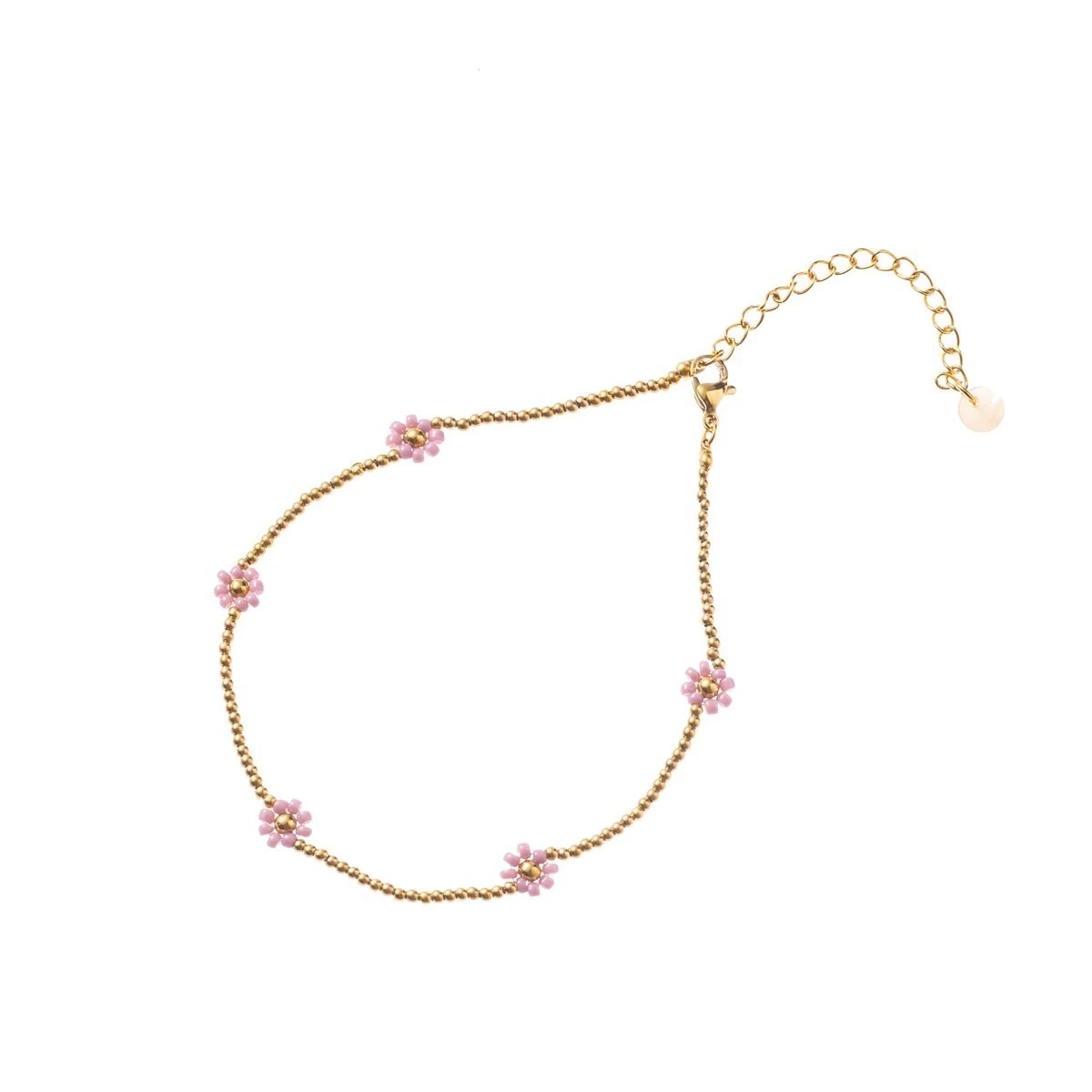 Go Dutch Label Enkelsieraad Kralen Madeliefs Roze