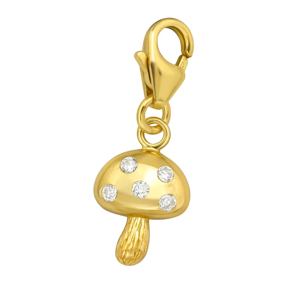 925 sterling zilver gold plated paddestoel bedel voorzien van een karabijnhaak.