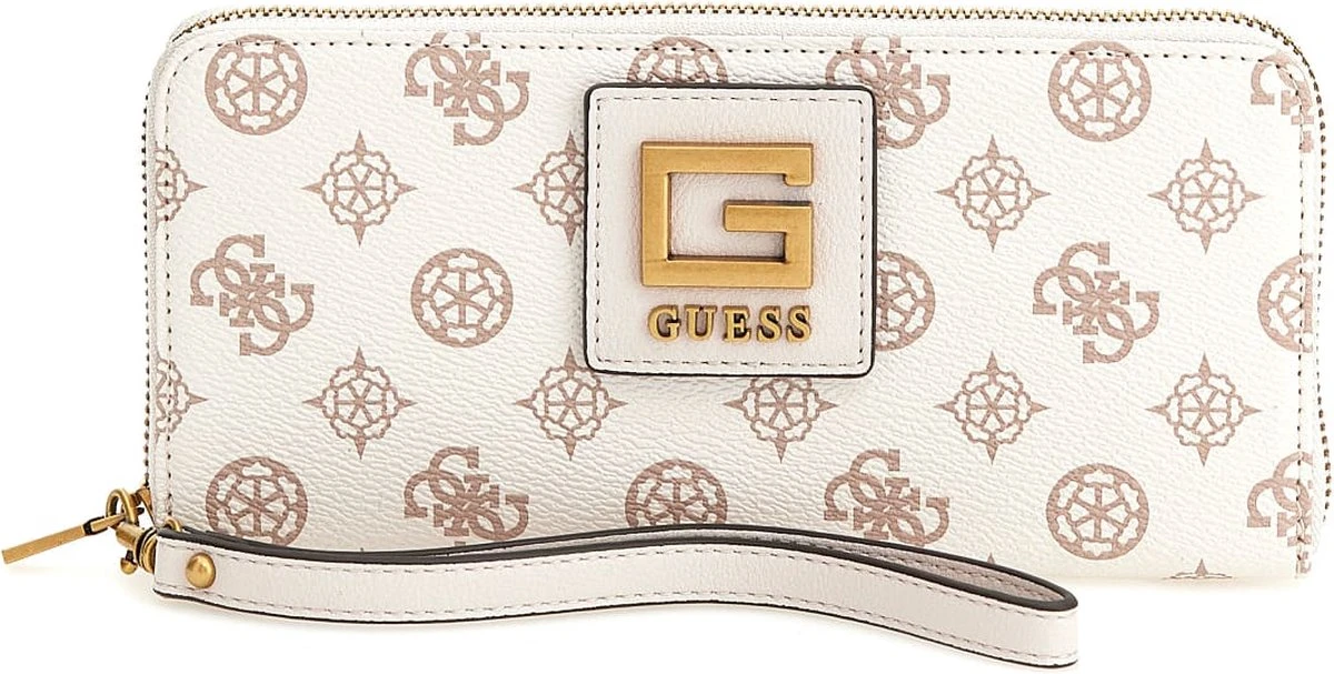 Guess Alva SLG Large Zip Around Dames Portemonnee – Cream Logo