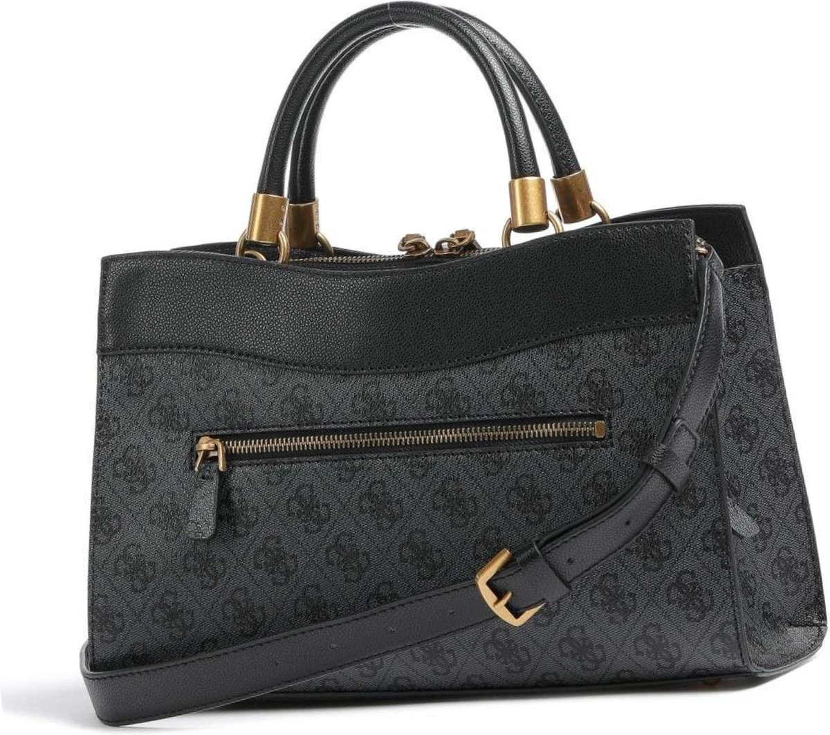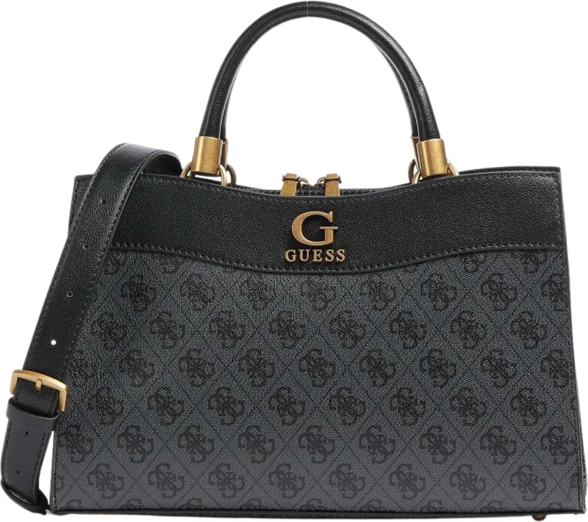 Guess Nell Logo SML Girlfriend Satchel Dames Handtas – Coal Logo