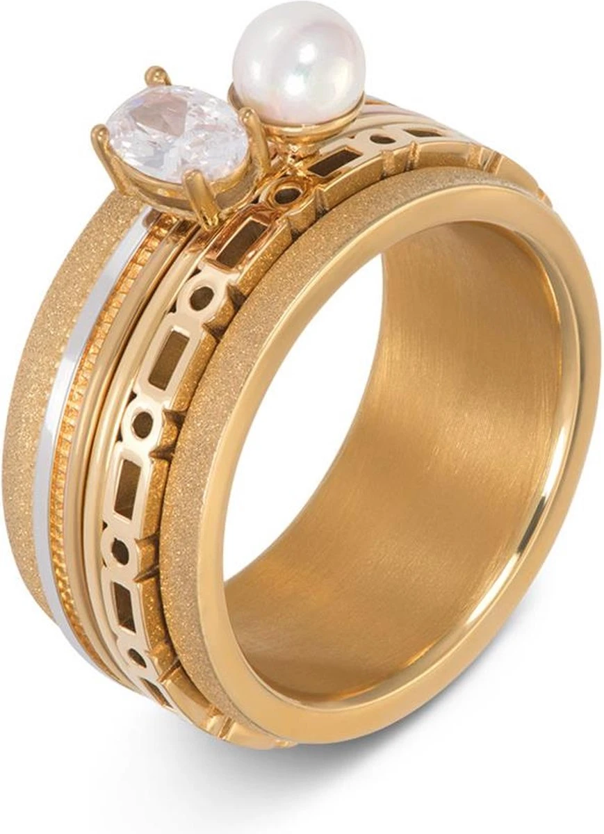 De iXXXi vulring Silence is een 1mm brede vulring gemaakt van stainless steel en is voorzien van een goudkleurige plating. De vulring bestaat uit een opengewerkt design met een golvend effect. Geschikt om te gebruiken over de iXXXi edelstaal basis ring. Een basisring van 10mm breed vul je met een totaal van 8mm aan vulringen.