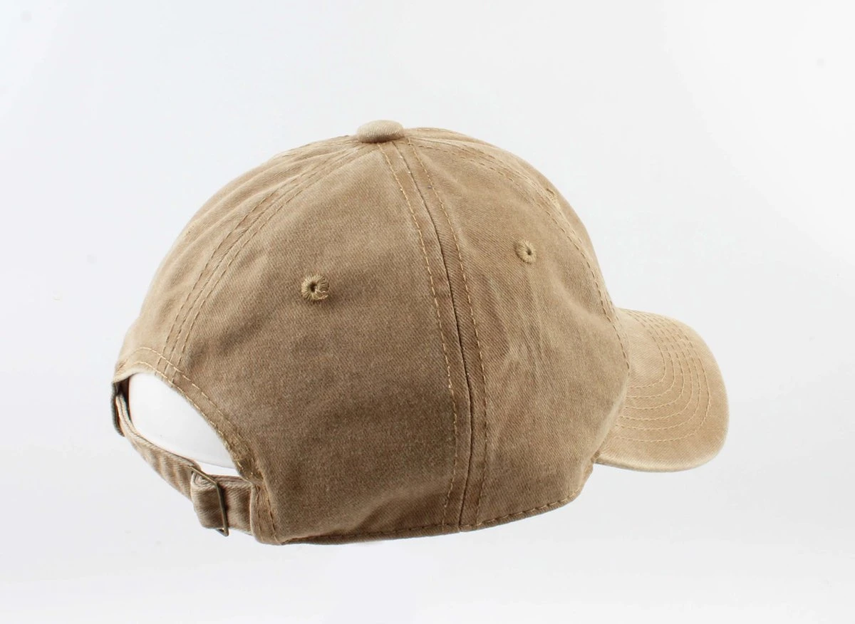 Deze pet is gemaakt van stevige spijkerstof in de kleur kaki. Op de achterkant is de riemsluiting, die het mogelijk maakt om de pasvorm aan te passen aan de grootte van je hoofd, zodat het perfect zit en zorgt voor extra comfort.