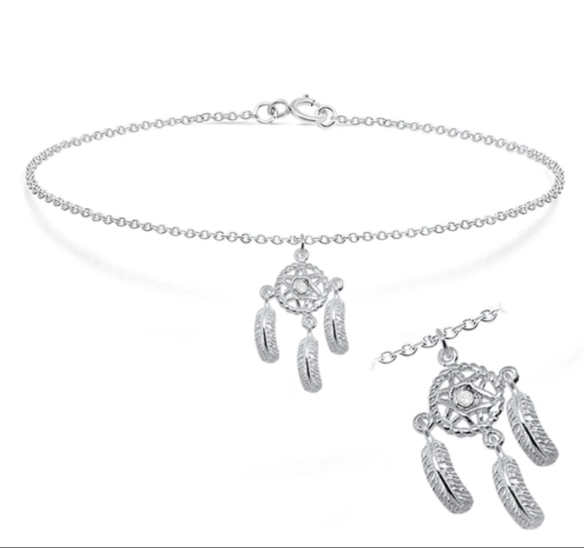 Sterling zilver 925 dromenvanger bedel enkelbandje met veren.