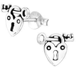 Sterling zilver 925 hartje met sleuteltje oorbellen.