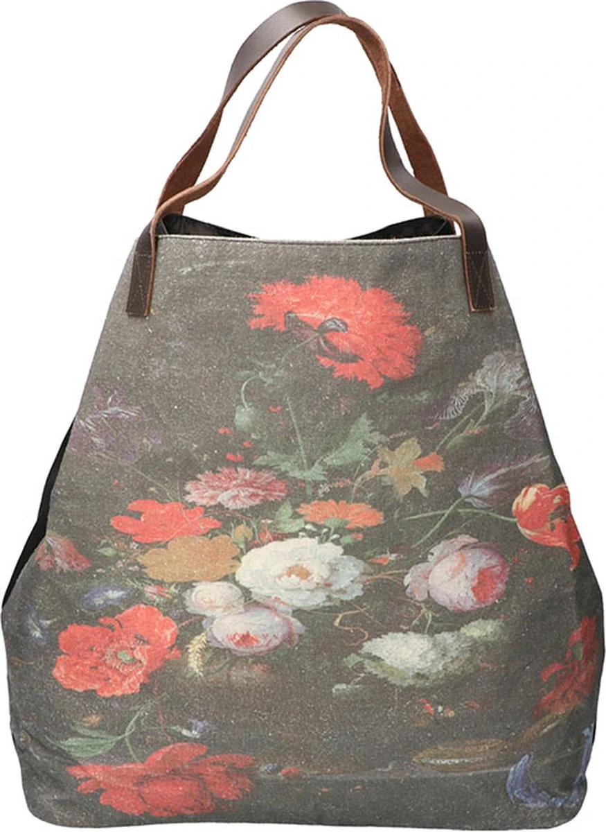 Stijlvolle canvas tote bag shopper, de tas is van het merk Leather Design. De handvatten zijn gemaakt van echt leer, het leer voelt goed aan en is van mooie kwaliteit. Het canvas van de tas is van goede zware kwaliteit. Op de voorzijde heeft de tas het Stilleven met Bloemen van Jan Davidsz als print. Het super ruime hoofdvak sluit met een kliksluiting. Intern heeft de tas 2 ritsvakken, handig voor kleinere spulletjes. De tas beschikt over: * Een ruim hoofdvak met kliksluiting * Leren handvatten * 2 binnenvakken met ritssluiting * Stilleven met Bloemen print * Zware kwaliteit canvas De tas is 42 x 44 x 20 cm.