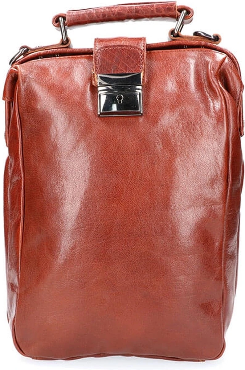 Echt leren schoudertas / rugzak geïnspireerd op het doktertas model. De tas is gemaakt van hoogwaardige kwaliteit leer. Het leer van de tas voelt goed aan en is soepel. De tas sluit met een drukknoop en een overslag met tt slot. U kunt de tas dragen als schoudertas, handtas of rugzak. De verstelbare schouderbanden zijn voorzien van musketonhaken waardoor u makkelijk kunt wisselen van schoudertas naar rugzak of vice versa. In het hoofdvak zit een tabletvak, een tussenvak met ritssluiting en binnenvak met ritssluiting. Ook heeft de tas een achtervak met ritssluiting. De tas is 20 x 32 x 10 cm. * Ruim hoofdvak met een drukknoop en een overslag met tt slot * Draagbaar als handtas, rugzak of schoudertas * Gewatteerd tabletvak * Binnenvak en tussenvak met ritssluiting in het hoofdvak * Achtervak met ritssluiting * Handvat * Verstelbare en afneembare schouderbanden * Gemaakt van prachtig echt leer