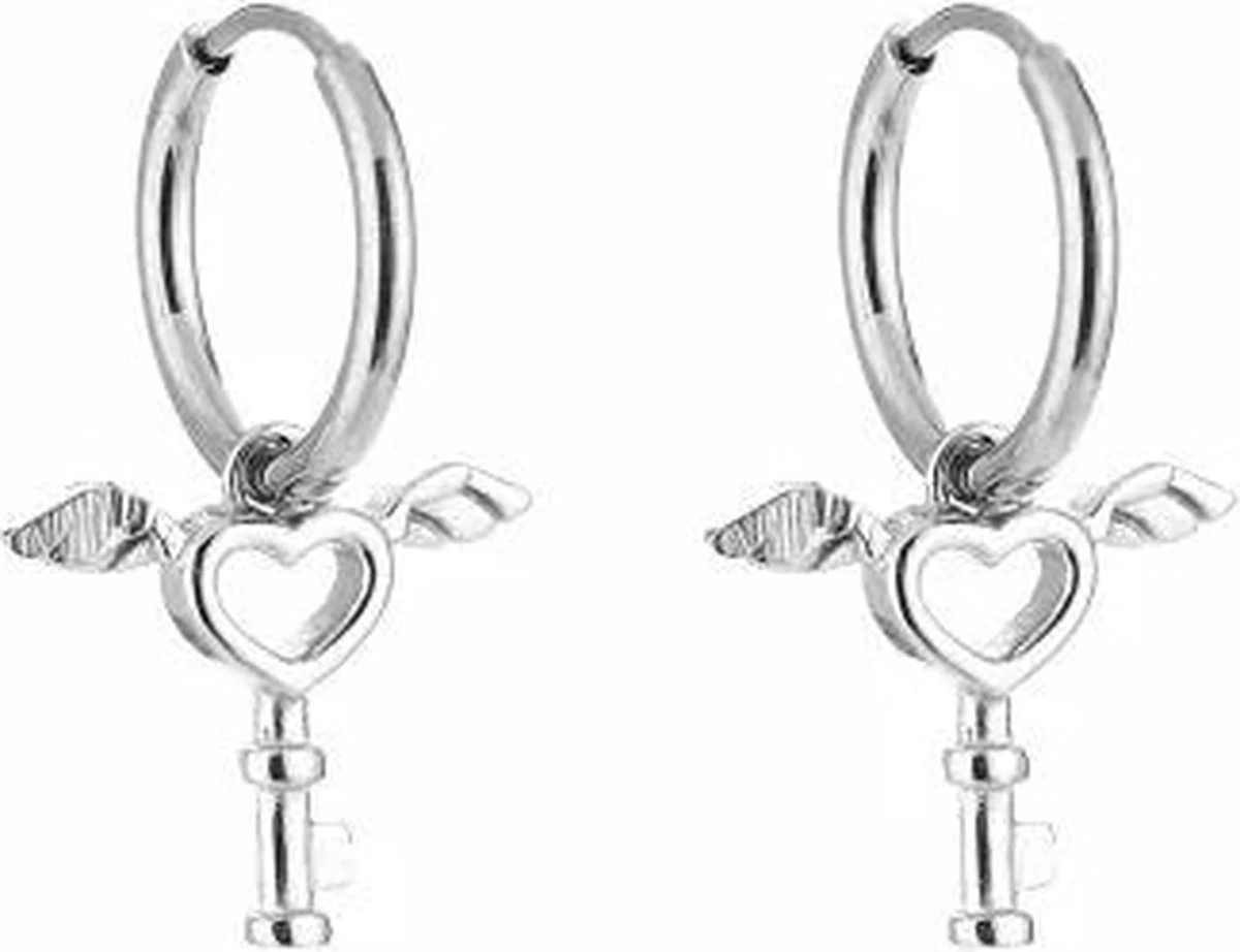 Michelle Bijoux Oorhangers Hart Vleugels Zilver