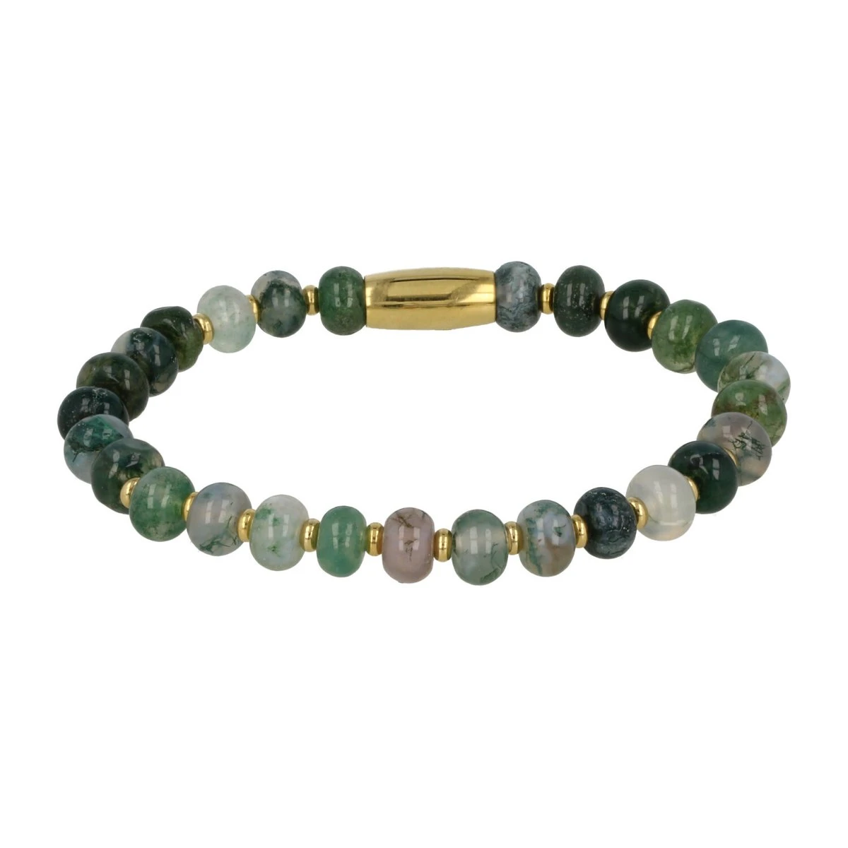 My Bendel – Gouden Kralenarmband Met Mos Agaat Edelsteen – Klassieke Gouden Armband Met Mos Agaat Edelstenen – Met Luxe Cadeauverpakking