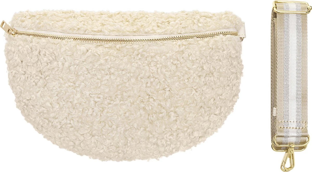 Hoe leuk is dit nieuwe heup/crossbodytasje helemaal in teddy stijl. Wij zijn helemaal verliefd op deze mooie tasjes! De tasjes worden geleverd inclusief superleuke bag strap en zijn een echte aanrader voor jouw winterse outfit. Dit tasje is gemaakt van 95% polyester en 5% metaal en hebben een afmeting van 26 x 16 cm.Je draagt dit tasje als heuptasje (fanny bag) of als een crossbodytas over je borst.