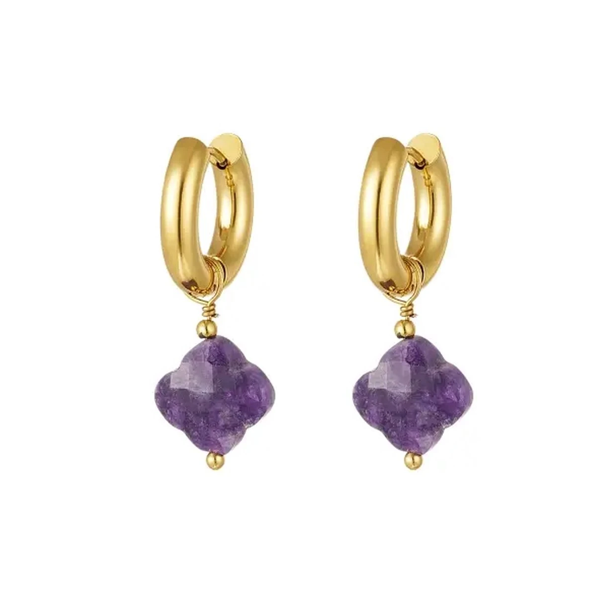 Hoe leuk zijn deze oorbellen met klaver in de kleur paars. Deze oorbellen passen perfect bij elke outfit en zijn een echte musthave! Oorbellen met klaver zijn gemaakt van amethist in combinatie met Stainless Steel.
