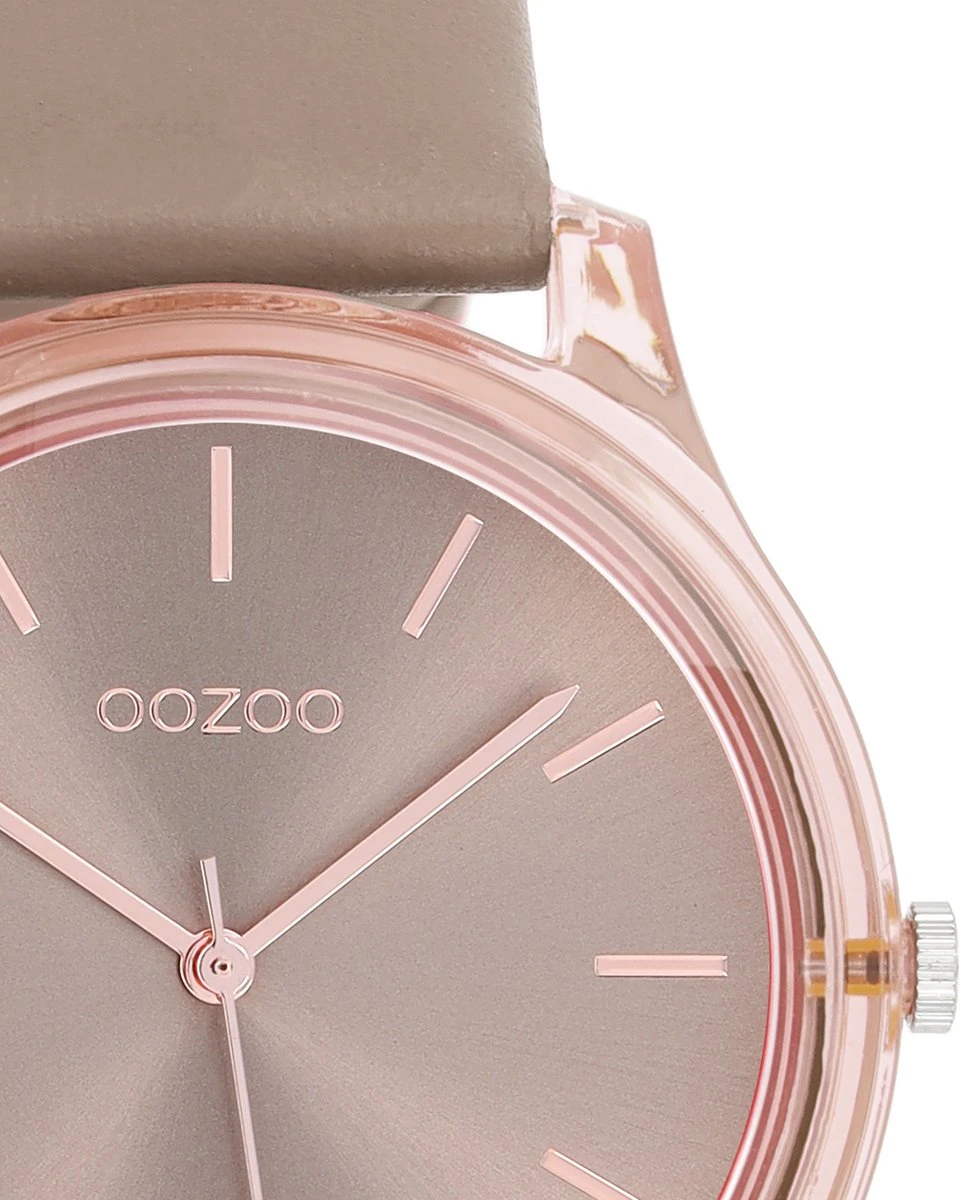 OOZOO Timepieces – Rosé Kleurige Horloge Met Taupe Leren Band – C11144