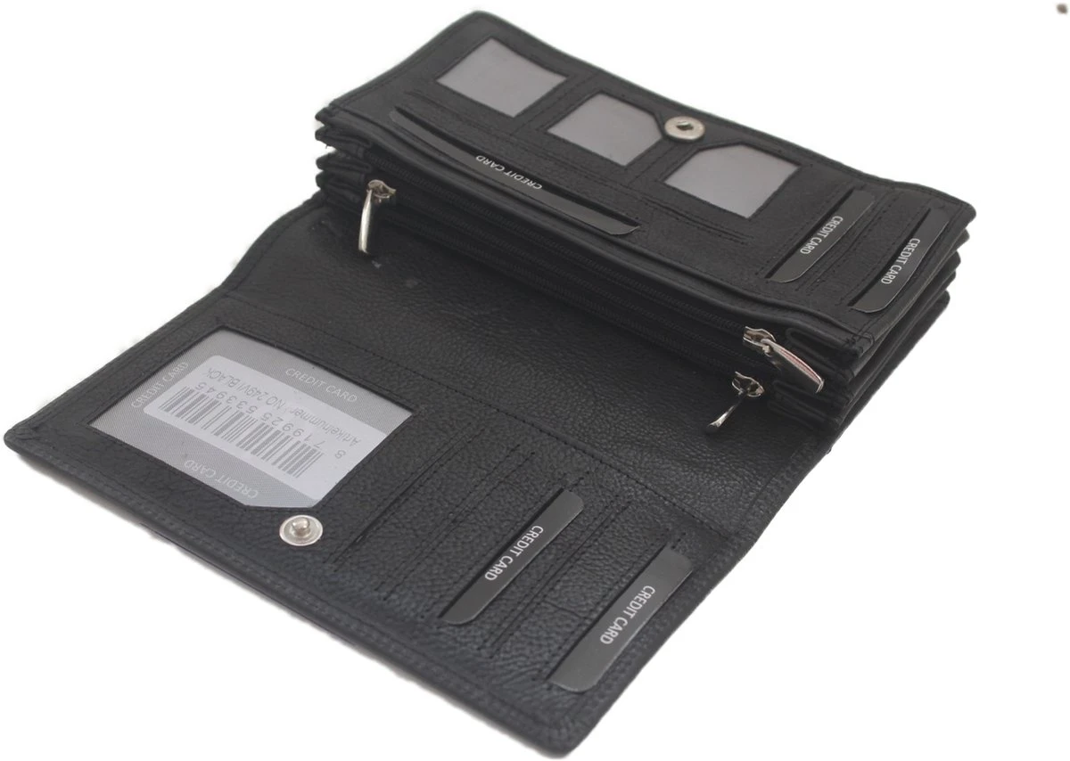 De grootste portemonnee uit ons assortiment door de vakken die veel breder kunnen worden is dit een van de grootste portemonnees die nog handelbaar is, ruimte voor pasjes, pasfoto’s briefgeld en kleingeld . uitgevoerd in een mooie en stevige kwaliteit leder is deze portemonnee al vele jaren een topper echter nu in een luxere uitvoering. Uitgevoerd met 4 ritsen waarvan 1 achterop ,5 steekvakken waarvan 1 achterop, ruimte voor pasfoto’s 21 pasjesvakken, en brede bodem per vak is dit echt een gigant onder de portemonnees.