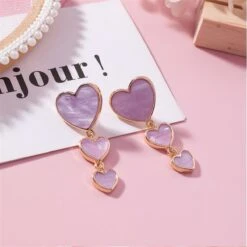 Three Heart / Hart Oorbellen | Zilverkleurig | 4,9 X 2,7 Cm | Fashion Favorite
