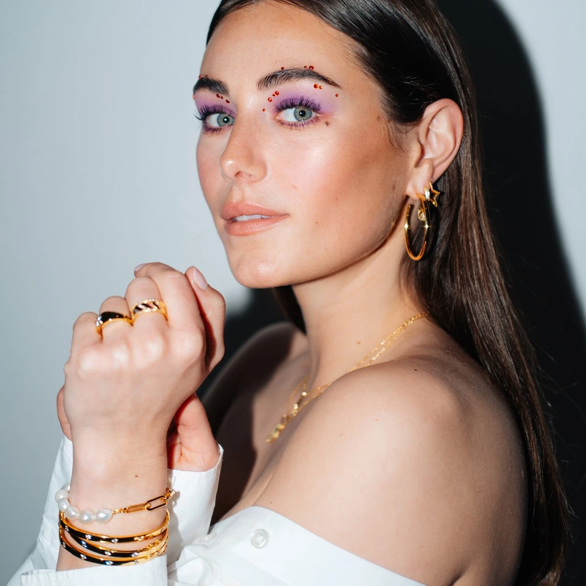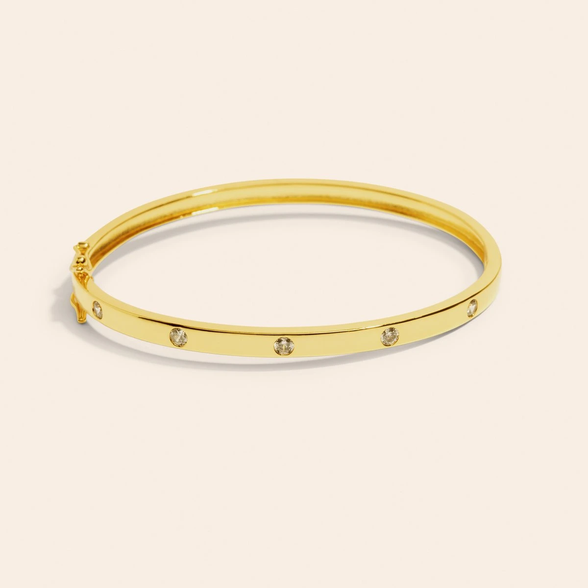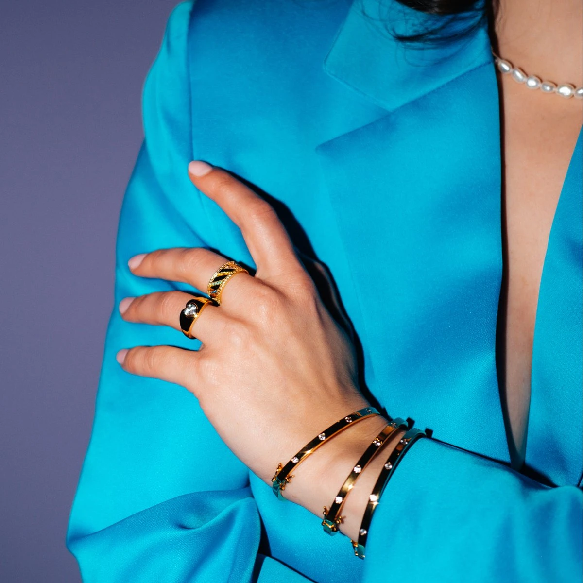 De Bangle Bracelet is het perfecte item om wat shine & sparkles toe te voegen aan elke outfit. Of het nou om een casual of chique outfit gaat! De armband gemaakt van messing is ingelegd met Zirkonia stenen die door hun glinstering voor een oogverblindende shine van licht en kleur geven. Het is daarnaast ook een perfect item om cadeau te geven aan een geliefde, of natuurlijk aan jezelf!