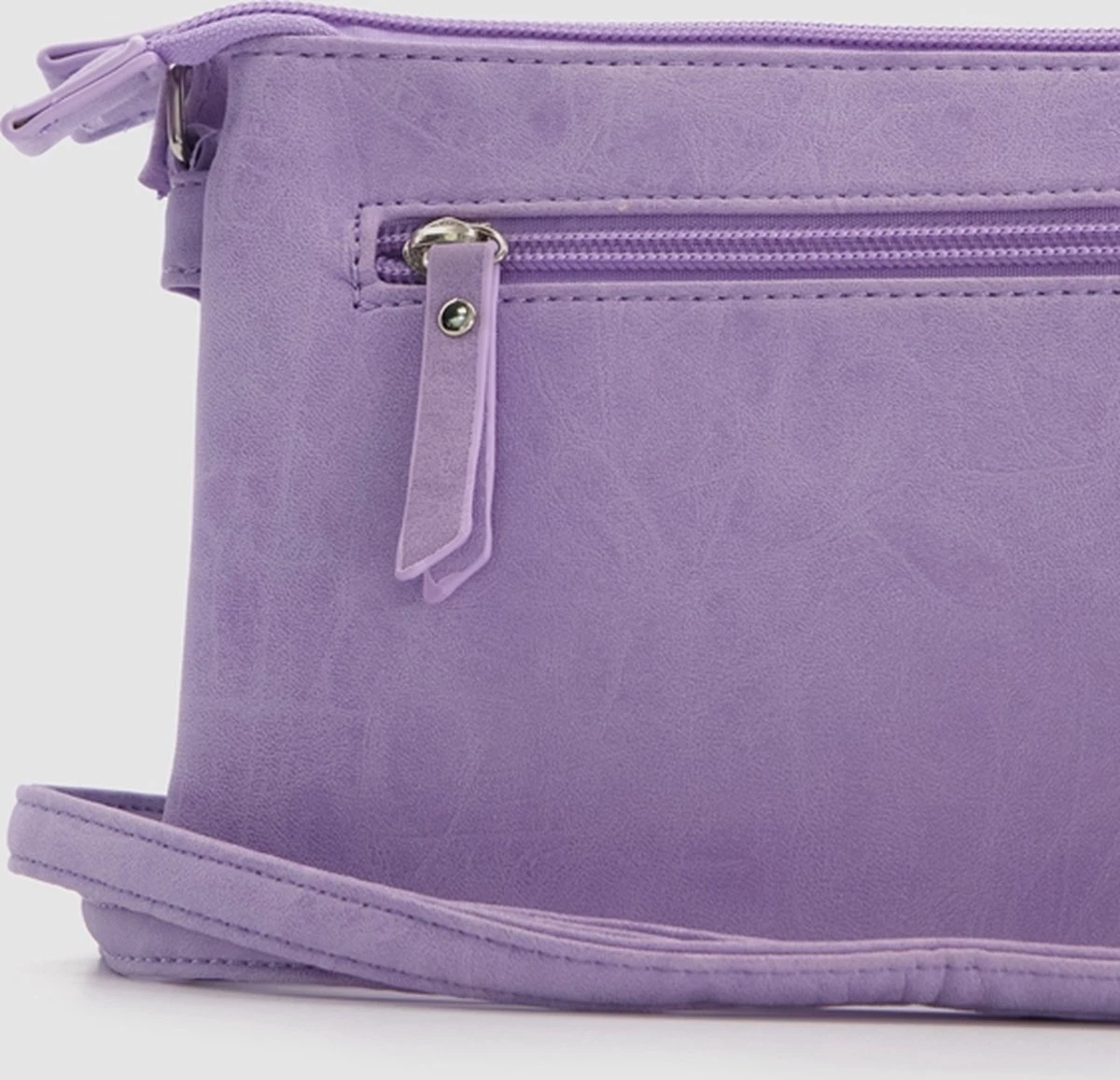 Lila/paarse Renato Lucci schoudertasje voor dames. Voorzien van een verstelbaar schouderhengsel, een hoofdvak en een klein vakje aan de achterkant. Beide met ritssluiting. Dit mooie tasje is gemaakt van imitatieleer. Afmetingen: 24 x 4 x 15 cm.