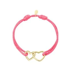 Satin Cord Armband Dubble Heart- Roze- Fuchsia- Goud – Nikkelvrij- Rvs