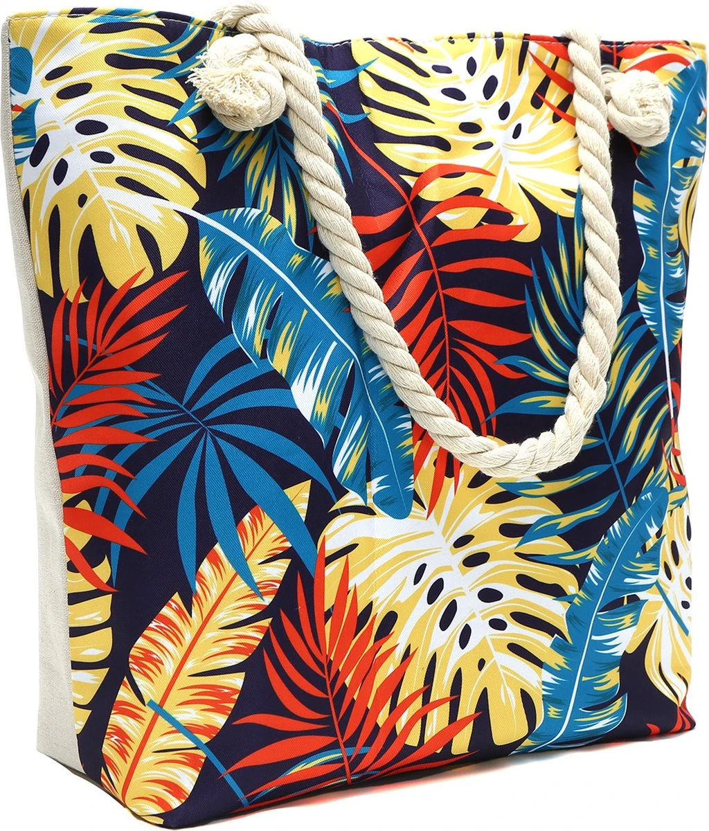 Strandtas Met Rits – Beach Bag – Bladeren – Geel – Blauw – Rood – 44 X 36 X 12 Cm