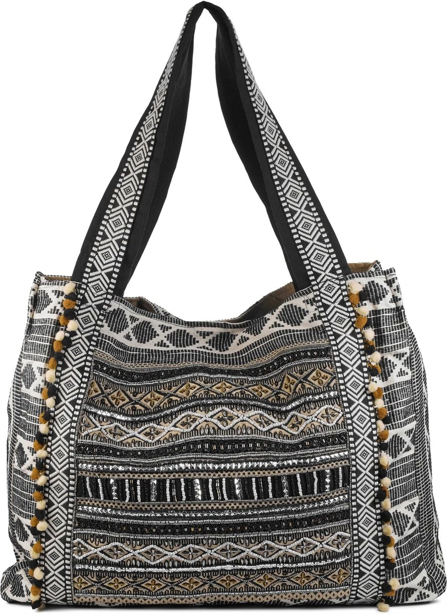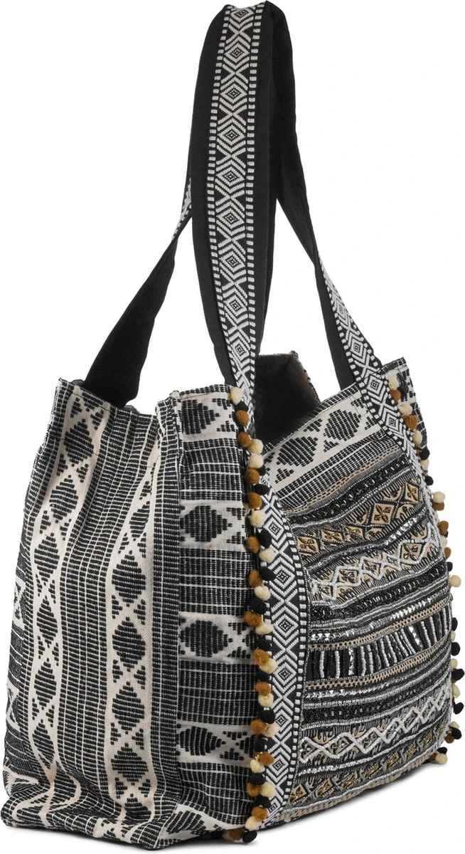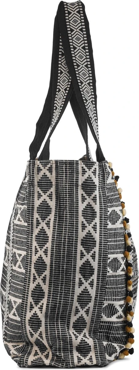 Damestas model 8s850-8459 in de kleur zwart van Summum AfmetingenDe afmetingen van deze tas bedragen 52 cm x 16 cm x 46 cm (LxBxH). BeschrijvingMulticolor canvas tas voor dames van het merk Summum. Deze schoudertas is uitgevoerd in canvas in de kleuren zwart en gebroken wit. De tas is af te sluiten met een drukknoop. De binnenzijde is uitgevoerd in stof en bestaat uit een groot vak en twee kleinere vakjes.