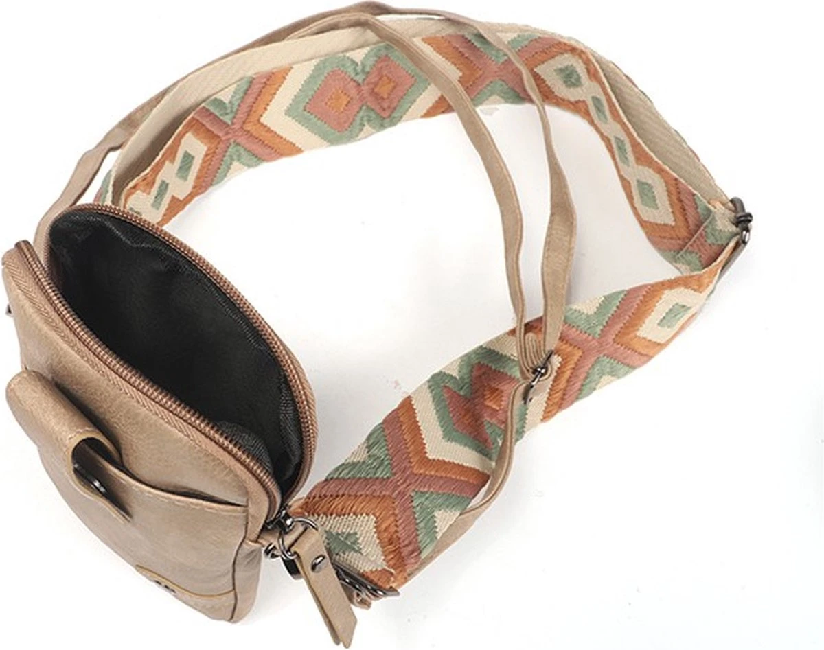 Stoer sportief schoudertasje / telefoontasje Oviedo is een nieuwe topper van de I’m Dutch collectie! Dit tasje is uitgevoerd in een mooi glimmend PU materiaal en wordt geleverd met twee verschillende verstelbare schouderband. Ideaal om af te wisselen!Het tasje heeft een vak aan de voorkant die perfect dient om een telefoon in op te bergen. In het middenvak kun je daarnaast van alles kwijt; portemonnee, sleutels, telefoon, noem het maar op! Aan de achterkant zit nog een verticaal vak met ritssluiting. Deze is ideaal om waardevolle bezittingen veilig in te bewaren. Perfect voor pasjes of muntgeld dus! Dit klassieke damestasje Oviedo / Braca valt op dankzij de kleurige schouderband. Deze is verstelbaar tot 130cm. Het tasje is te dragen als schoudertasje, of als crossbody tasje. Oviedo is een ideaal klein tasje voor een dagje weg of avondje uit! Details:Kleur: TaupeMateriaal: PU Materiaal /Veganistisch leerAfmeting tas: 12cm x 19 cm Afmeting schouderband: Verstelbaar tot 130 cm