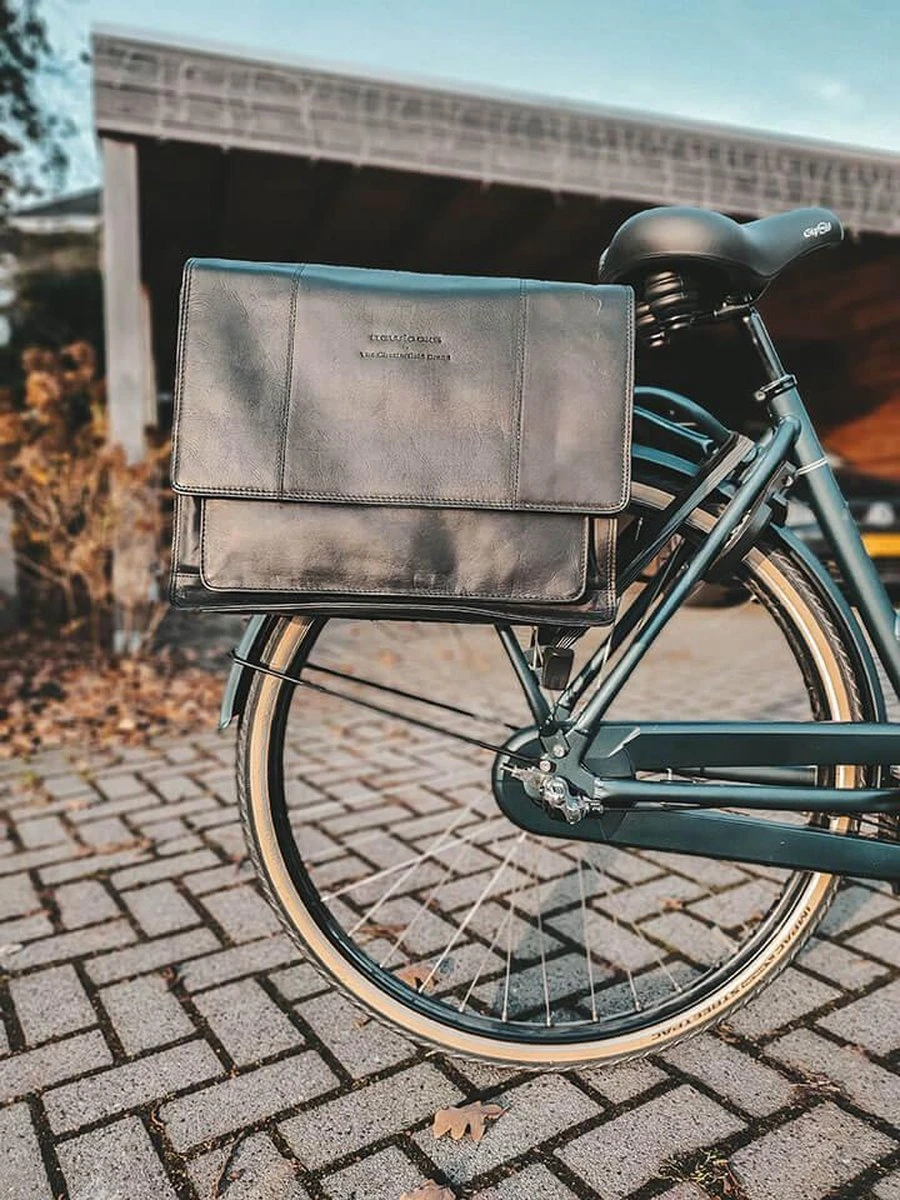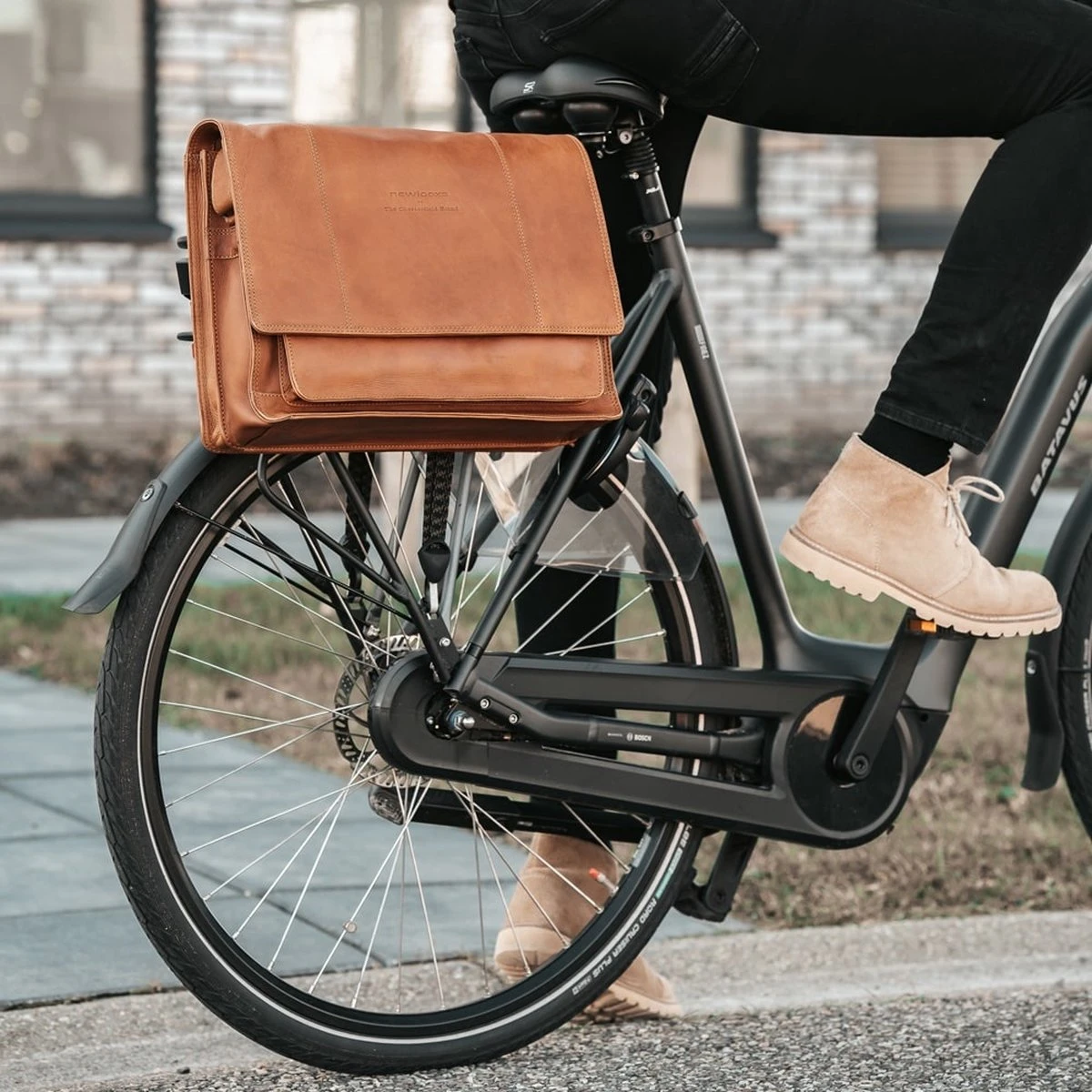 Stijlvolle leren fietstas met 15.6 inch laptopvak en bevestigingssysteem van New Looxs. In samenwerking met New Looxs hebben wij een serie leren fietstassen ontwikkeld waarbij we gebruik maken van het unieke New Looxs bevestigingssysteem. Deze leren Fietstas Gent is voorzien van een bevestigingssysteem aan de achterkant. Het voordeel van dit systeem is dat je de fietstas op ieder type bagagedrager kan bevestigen. Zonder gereedschap klik je de tas heel eenvoudig op de bagagedrager. De bevestiging aan de achterkant is weggewerkt met een ritssluiting. Op deze manier is de tas ook zeer geschikt om als business- en laptoptas te gebruiken. Deze leren fietstas is voorzien van twee compartimenten. Het achterste is een verstevigd vak voor een 15.6 inch laptop. Het voorste vak is geschikt voor A4 documenten en mappen en beschikt over een extra vak met ritssluiting. Verder wordt deze tas geleverd met een losse beschermhoes voor een tablet,en verstelbare schouderband. Kortom, een zeer rijk en veelzijdig uitgeruste leren fietstas voor dagelijks gebruik. Deze leren fietstas is gemaakt van hoogwaardig Wax Pull-up leer. Wax pull-up leer wordt gekenmerkt door een zachte en soepelere structuur. Eventuele gebruikssporen kun je makkelijk wegwrijven door de speciale wax behandeling die de tas heeft ondergaan. Zo blijft je tas jarenlang als nieuw. Heb je vragen over deze tas of één van onze andere producten? Neem gerust contact met ons op, we helpen je graag. Bestellingen op werkdagen voor 16.00uur worden dezelfde dag nog verzonden.