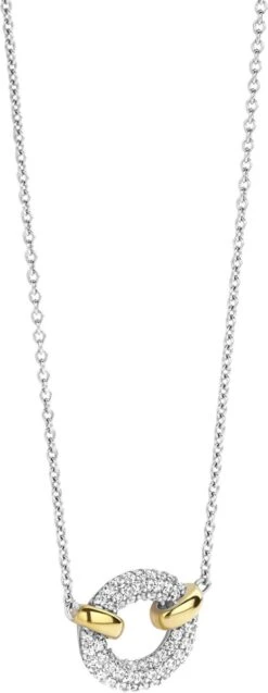 Deze TI SENTO – Milano pavé ketting 34026ZY/42 pronkt met een luxe pavé schakel van witte cubic zirconia (CZ) stenen die met de hand zijn gezet. Het pavé middenstuk wordt bijeengehouden door twee zilveren schakels die verguld zijn met geelgoud. Deze ketting is vervaardigd uit de hoogste kwaliteit 925 sterling zilver. Maak je look compleet met deze stijlvolle ketting, geïnspireerd door de puurheid en zachtheid van liefde. De ketting is verstelbaar tussen 38 cm en 48 cm en kan dus gedragen worden op verschillende lengtes. Al onze kettingen zijn nikkelvrij en hypoallergeen.