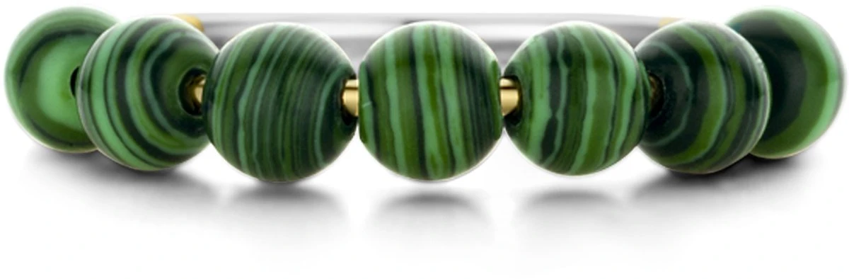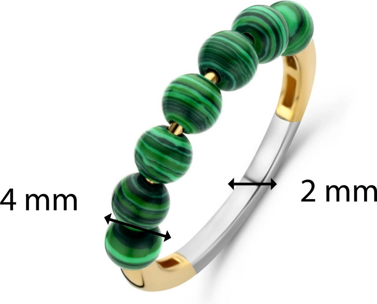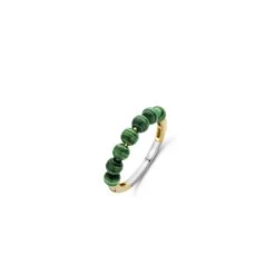 Deze TI SENTO – Milano gold-plated stenen ring 12284MA pronkt met een reeks malachietgroene kralen. De ring is vervaardigd uit de hoogste kwaliteit 925 sterling zilver en verguld met geelgoud. Het bolvormige silhouet maakt de ring een heruitgevonden klassiek vintage icoon, met een vleugje moderne frisheid. De prachtige malachietgroene stenen inspireren innerlijke liefde. Voeg wat rijkelijke schoonheid toe aan je look met dit sieraad. Al onze ringen zijn nikkelvrij en hypoallergeen.