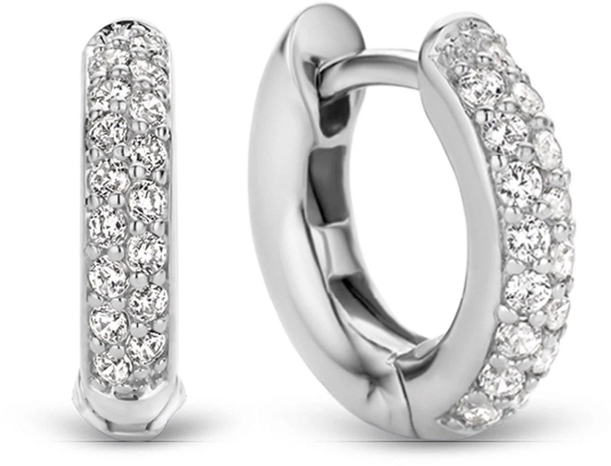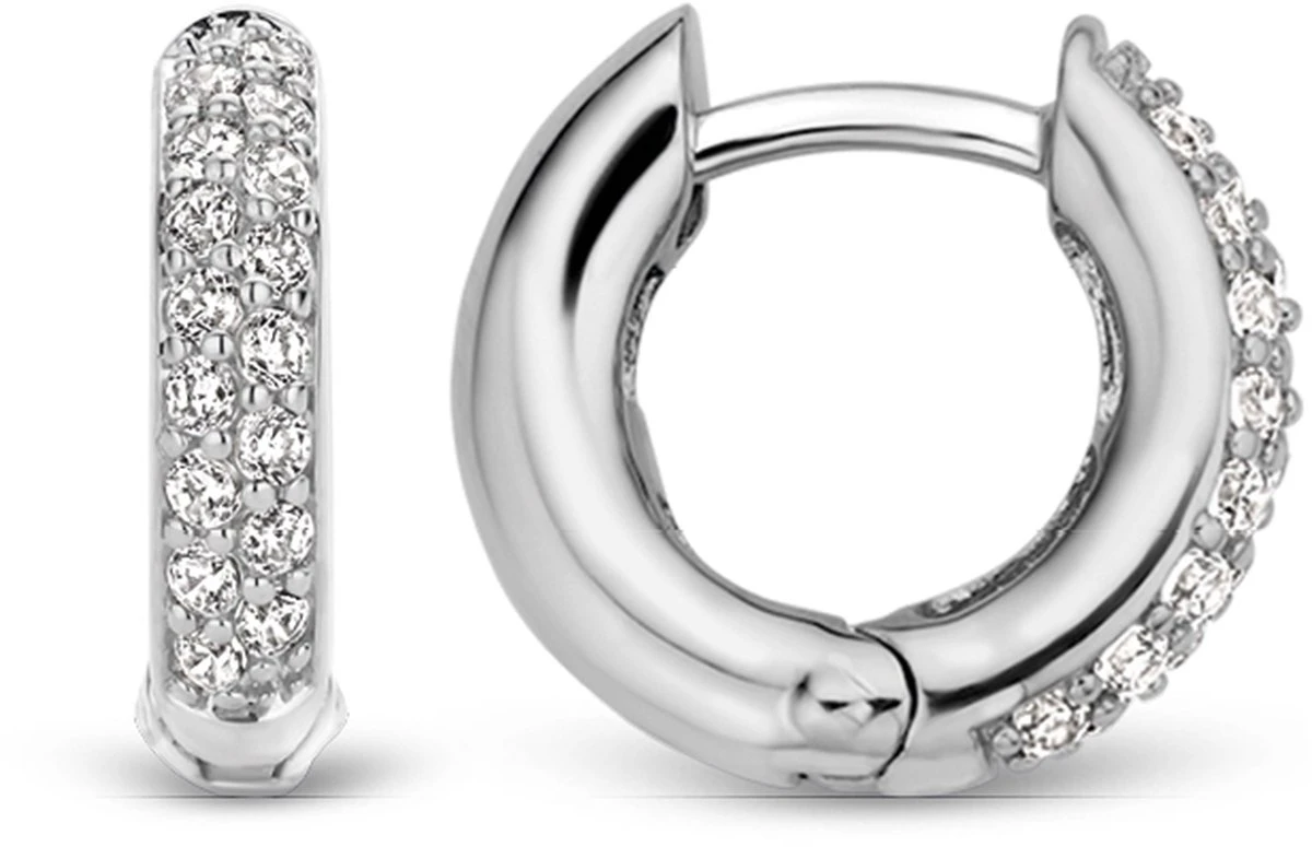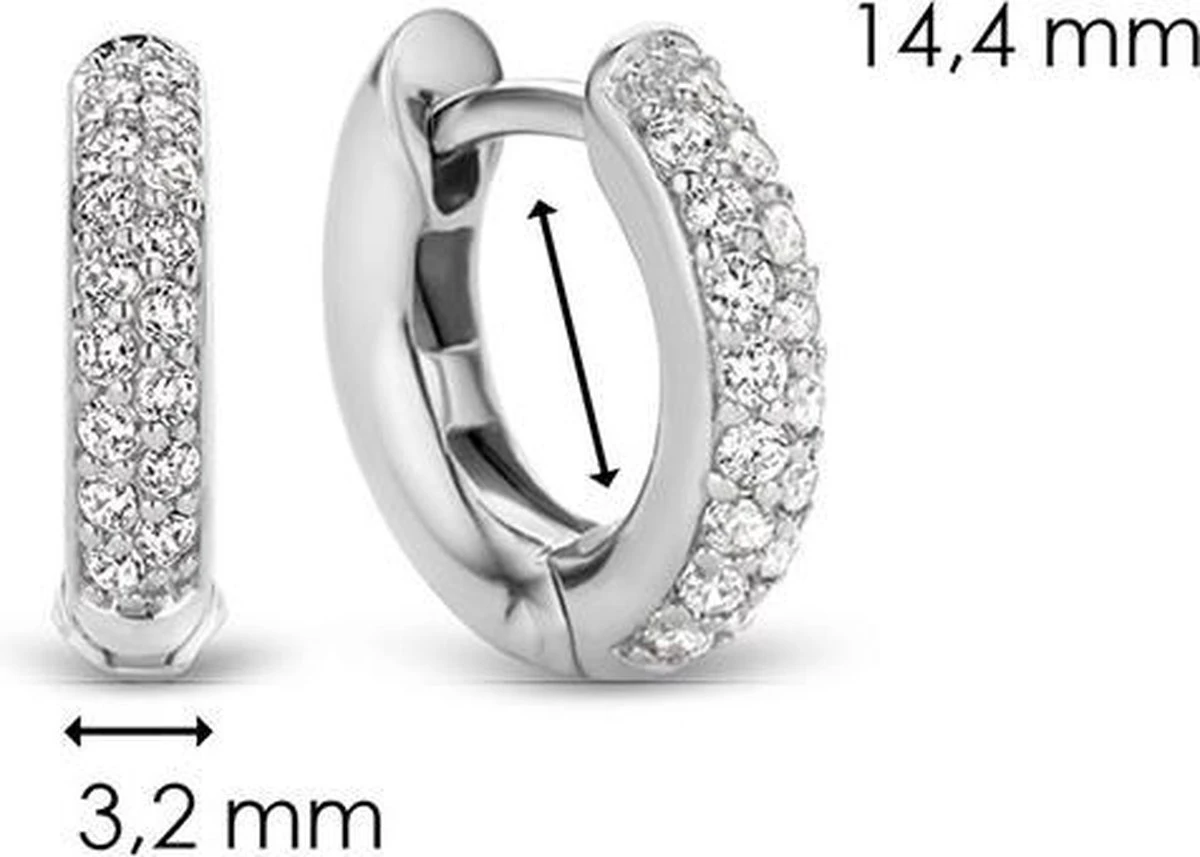 Deze TI SENTO – Milano oorbellen met een doorsnede van 14 mm zijn gemaakt van gerhodineerd sterling Zilver en pavé gezet met twee rijen zirkonia’s die briljant geslepen zijn. De oorbellen kunnen zowel solo worden gedragen als worden gecombineerd met oorbedels volgens het TI SENTO Mix & Match concept.