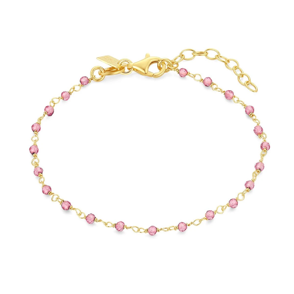 Armband in verguld zilver, roze kristallen, lengte is verstelbaar.