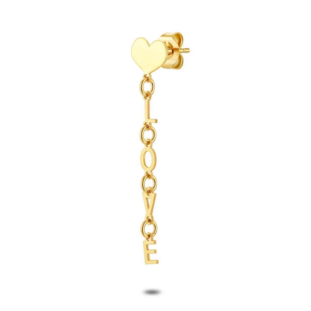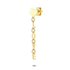 Oorbel per stuk in 18kt verguld zilver, hartje, love, 40 mm.