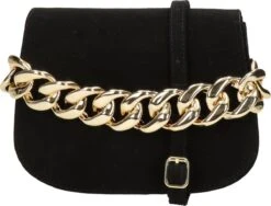 Unisa Zbruna dames tas. Deze stijlvolle tas van Unisa maakt elke outfit compleet. De buitenkant van de tas is gemaakt van suede. De binnenkant van de tas is van leer en textiel. De tas heeft 1 groot vak die sluit met de magnetische drukknop. Er zit bij de tas een korte gouden chain ketting en een afneembaar lang hengsel. Afmetingen: 13 x 19 x 6 cm.