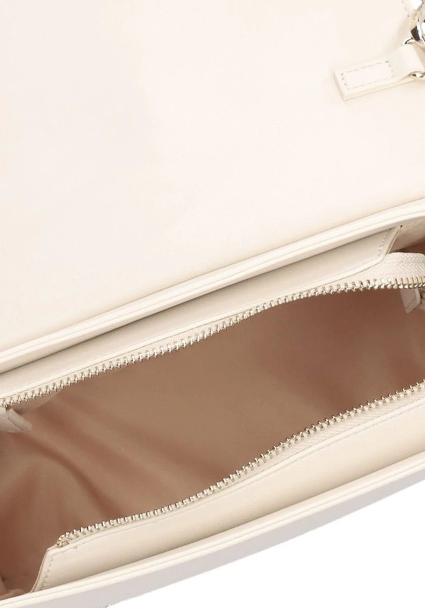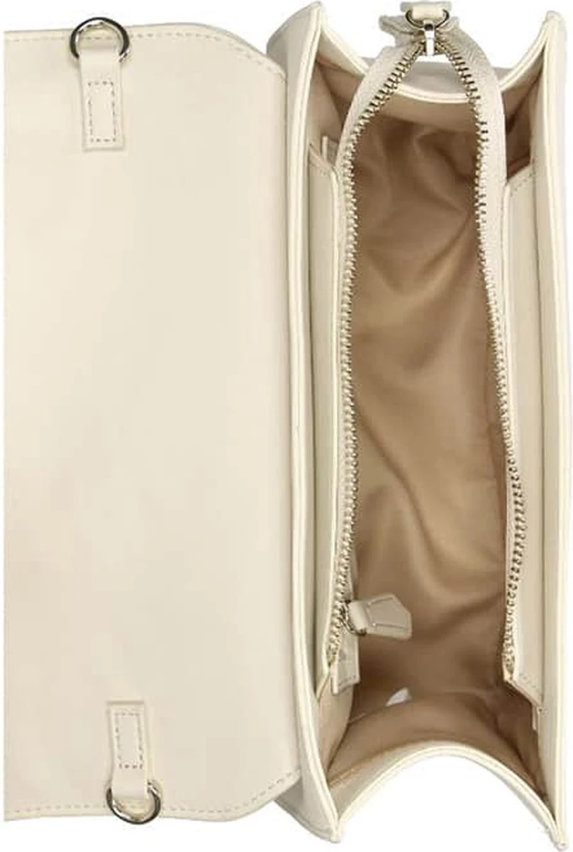 De prachtige klep van deze beige gekleurde Souvenir Re opent met een kliksluiting. Als je de klep opent, zie je hieronder ook nog een ritssluiting, deze zorgt ervoor dat jouw essentials extra veilig opgeborgen zitten. Wanneer je ook deze rits opent zie je het hoofdvak en aan één zijde een ritsvak en aan de andere twee steekvakken.