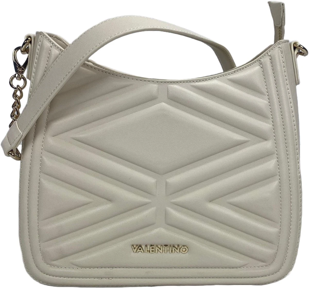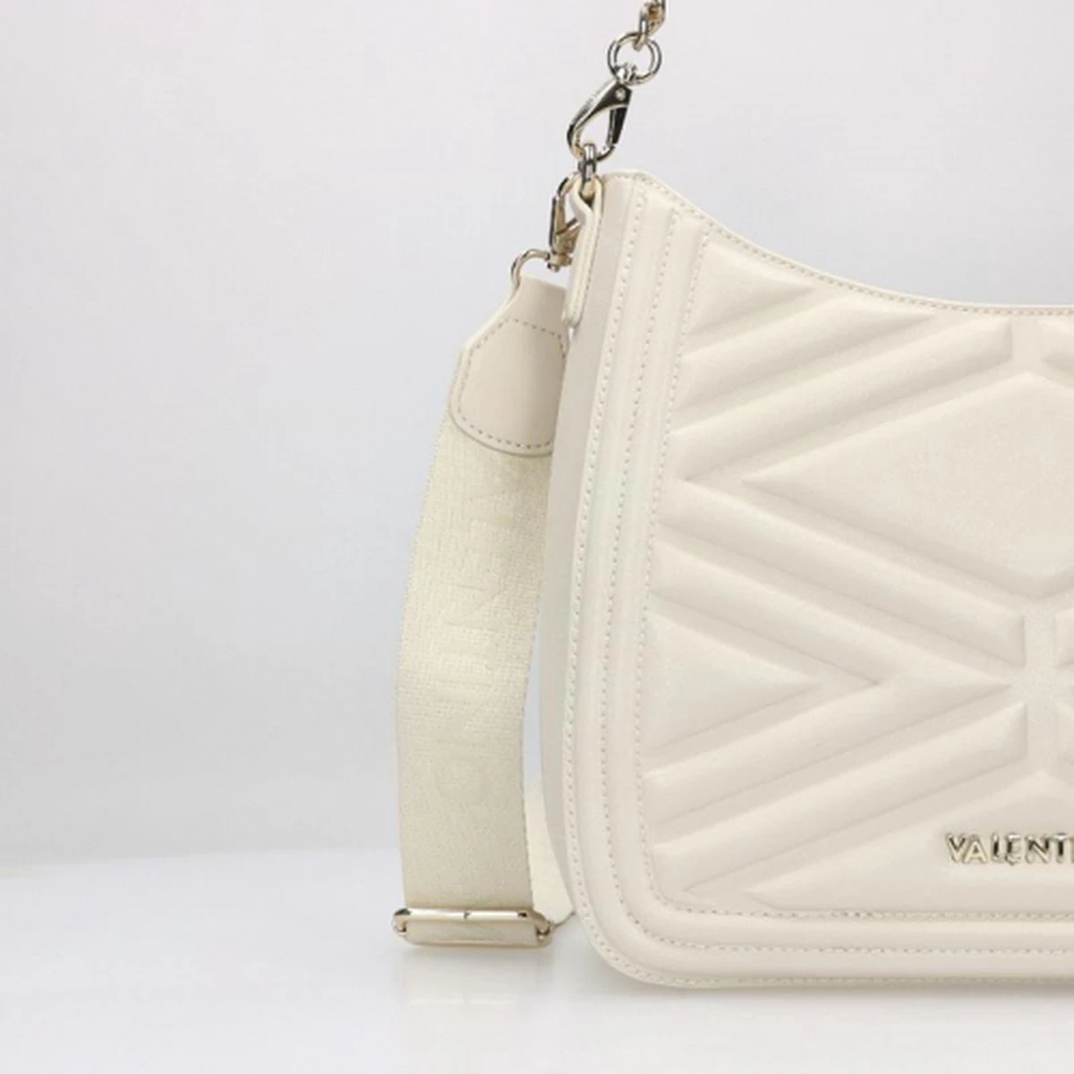 Bij Valentino Bags denk je aan stijlvolle, trendy en chique tassen; gelukkig zijn dat allemaal eigenschappen van deze crossbody uit de ‘Souvenir Re’ collectie. Het mooie patroon met de ruitmotieven geeft deze tas een extra flair en laat jouw outfit shinen wanneer jij door de stad loopt. Verder komt deze tas met twee schouderbanden, één brede schouderband in de kleur beige en een schakelketting met een beige gekleurd tussenstuk van kunststof, hierdoor hangt de Souvenir Re tas extra comfortabel over jouw schouder.